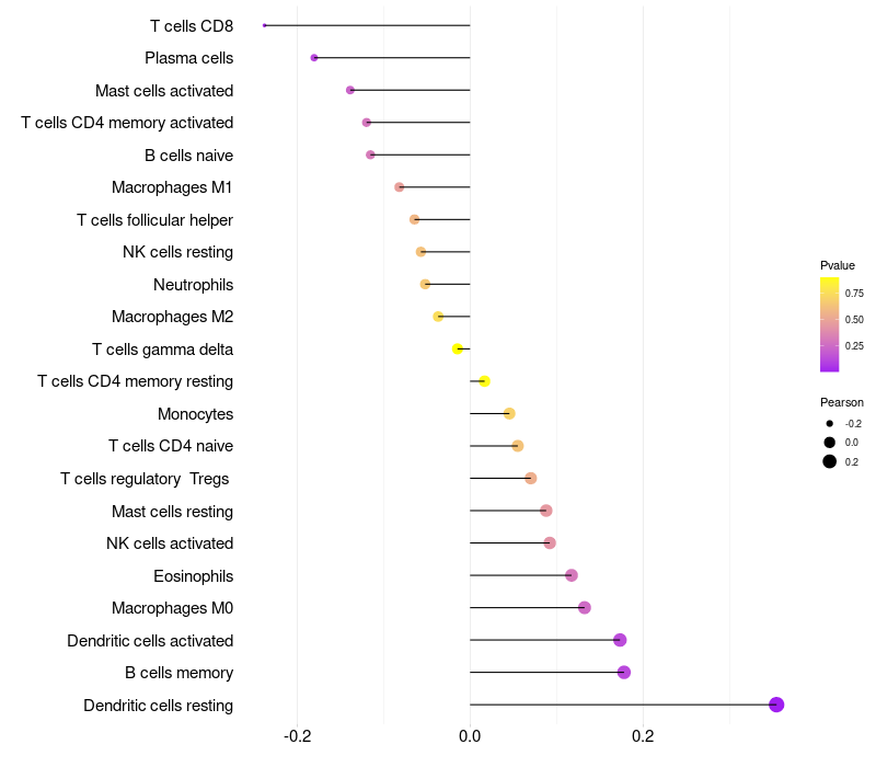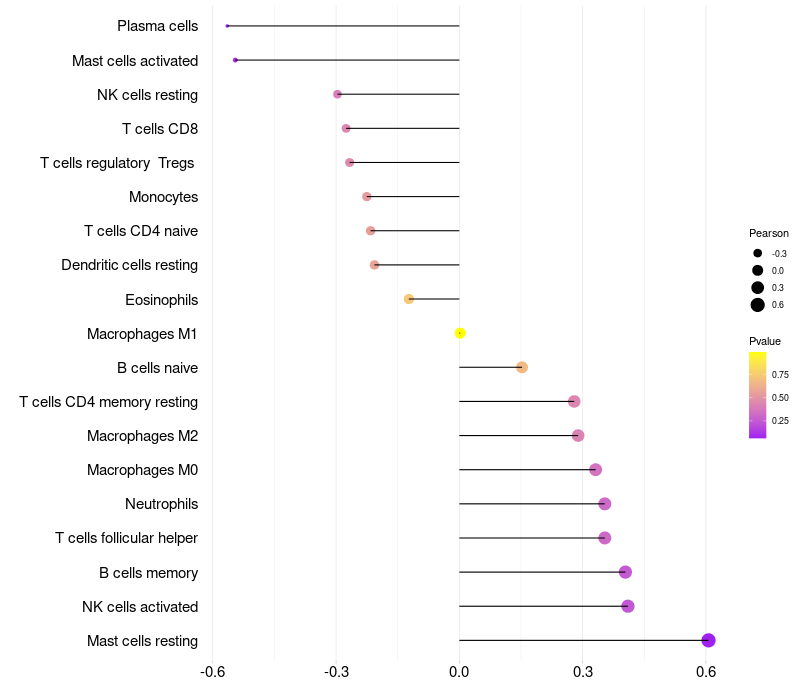 Lollipop of STAMBP expression and immune infiltrating cell level correlation result in HBV+ Chronic HBV (CHB) infection samples
