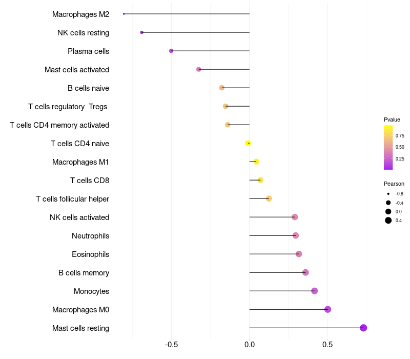 Lollipop of STAMBP expression and immune infiltrating cell level correlation result in HBV+ Hepatocellular carcinoma samples