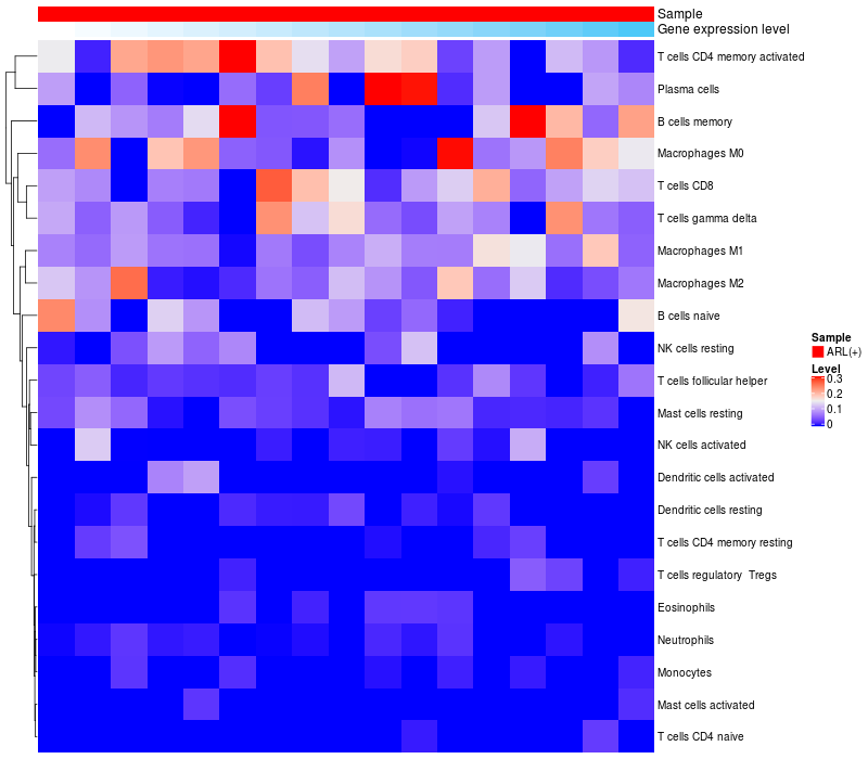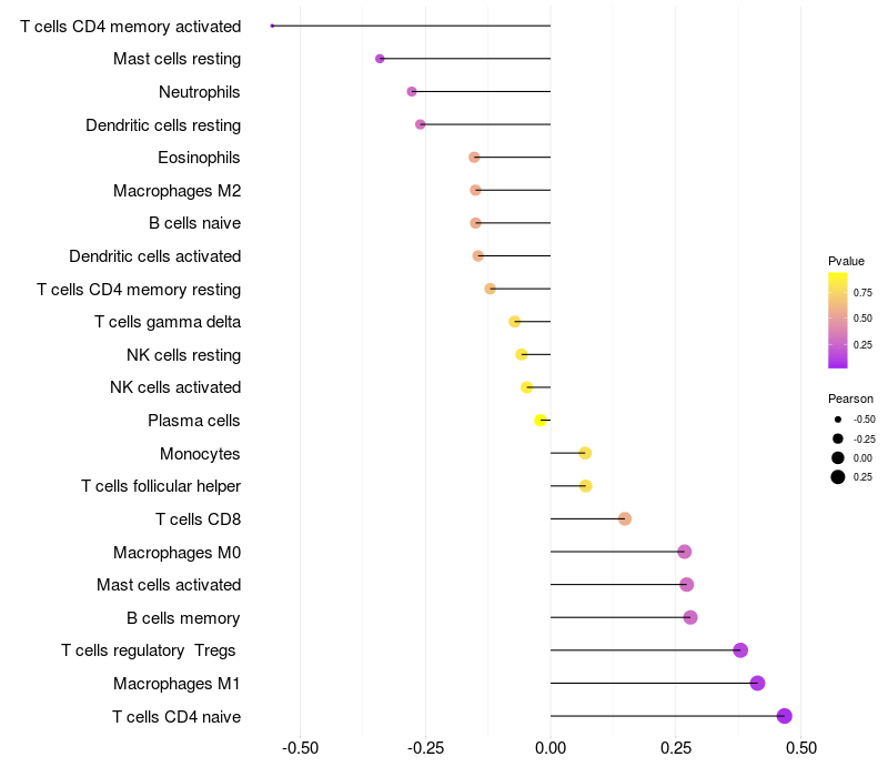 Relationship between gene expression and immune infiltrating cell level