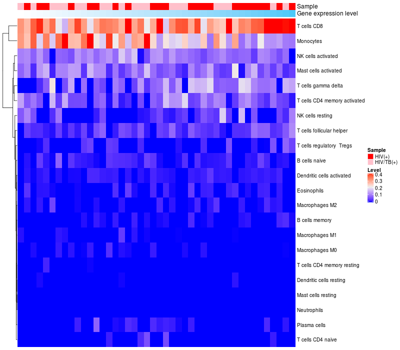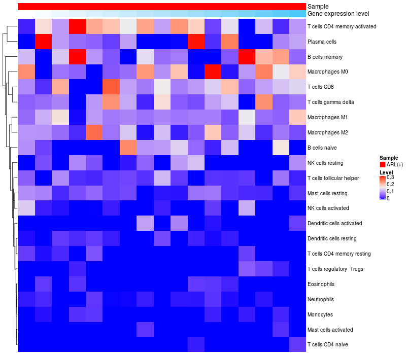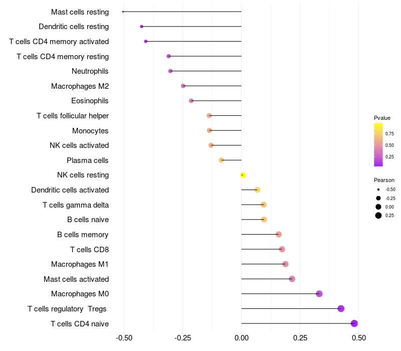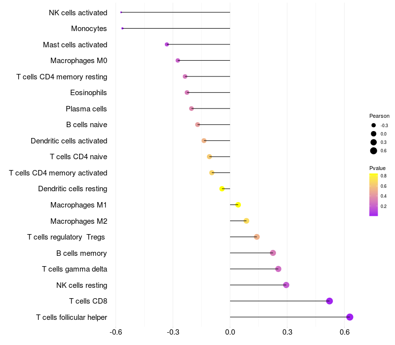 Relationship between gene expression and immune infiltrating cell level