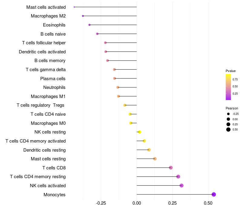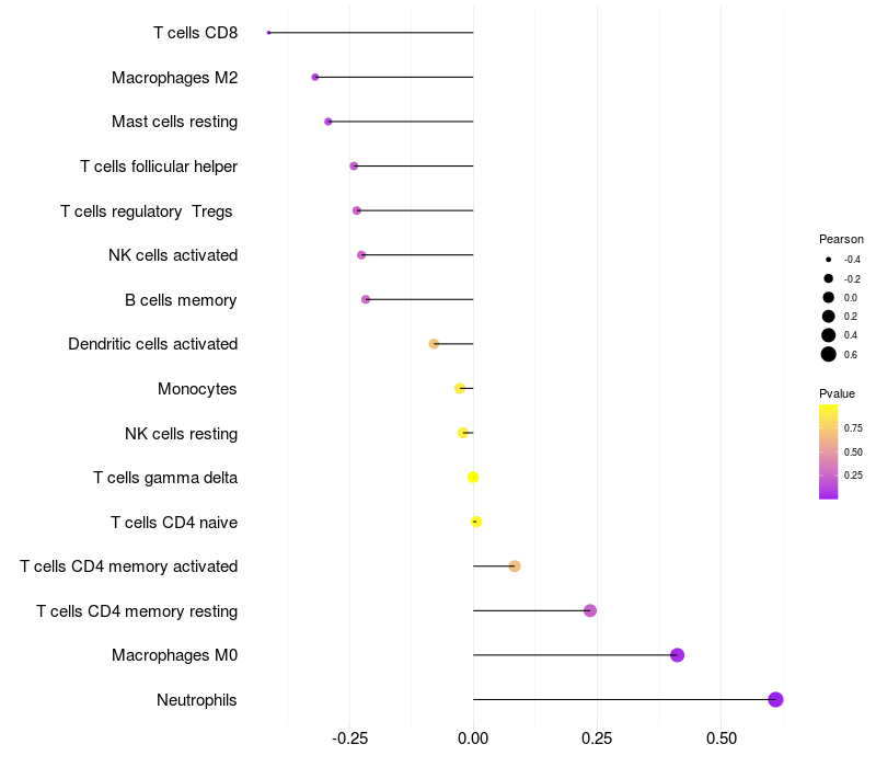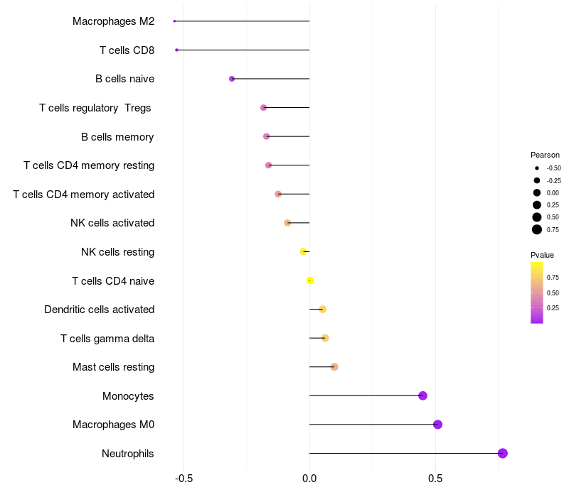 Lollipop of STEAP4 expression and immune infiltrating cell level correlation result in HTLV1+ samples