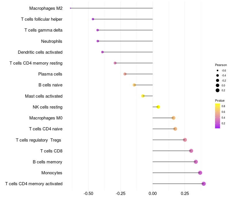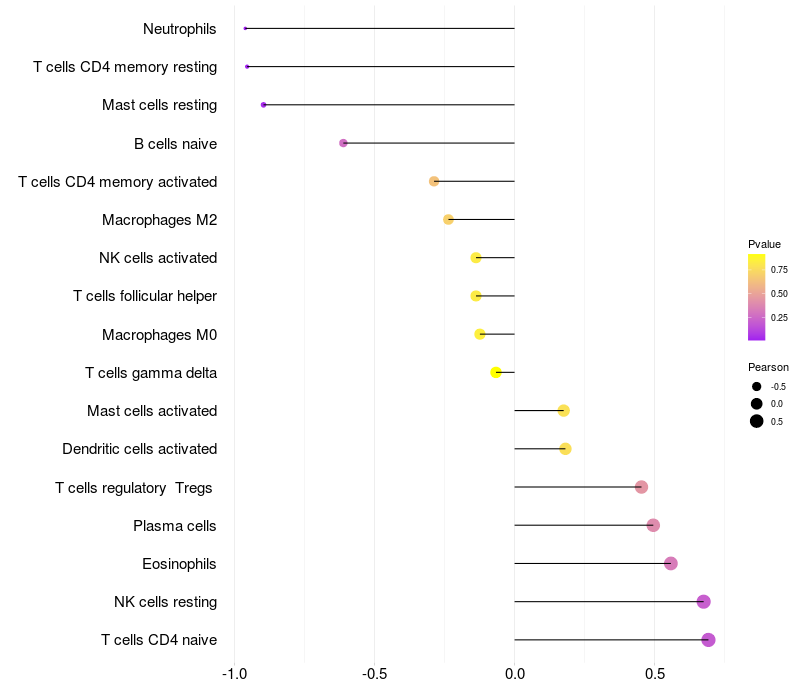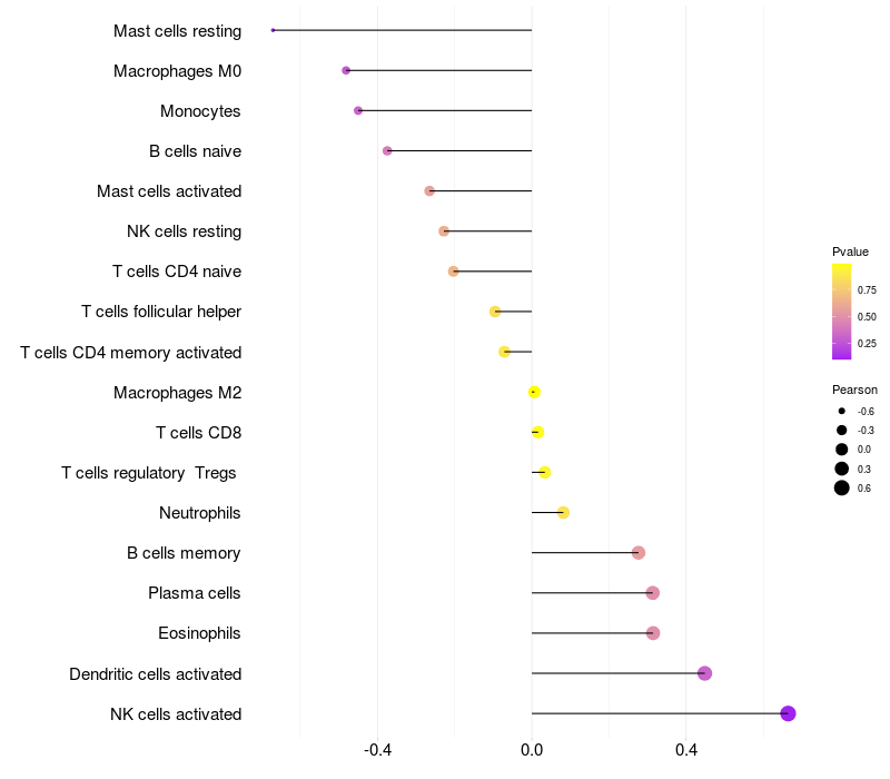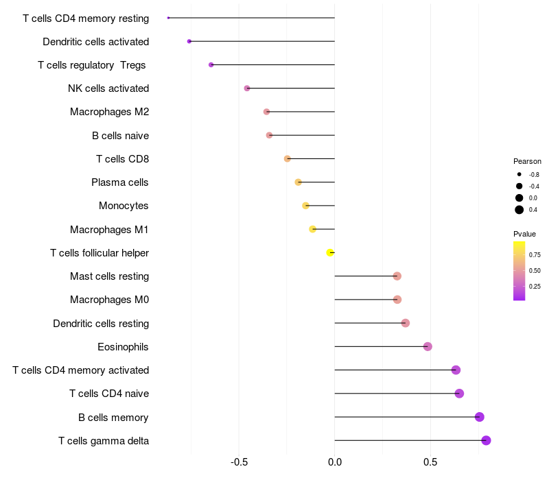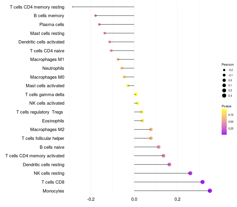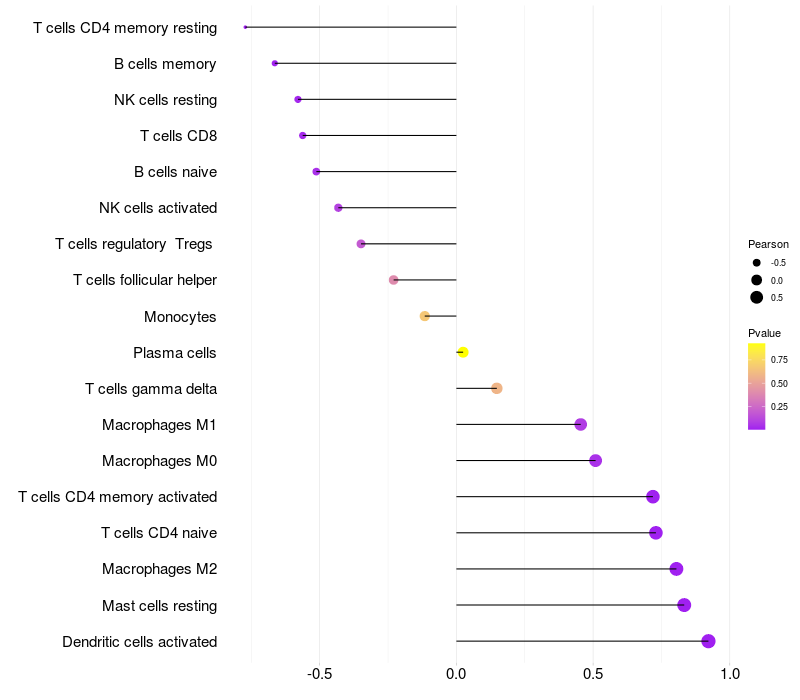 Lollipop of STK32B expression and immune infiltrating cell level correlation result in EBV+ samples