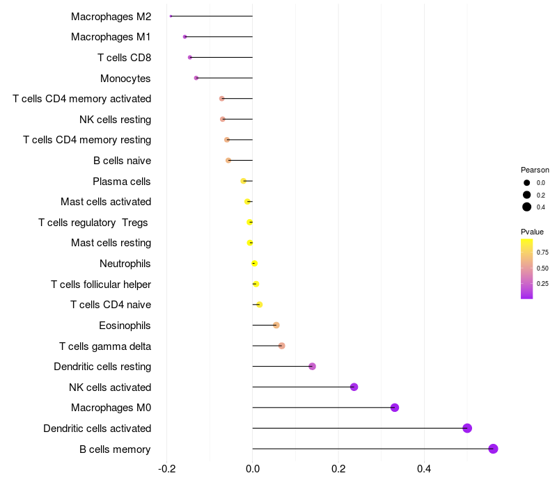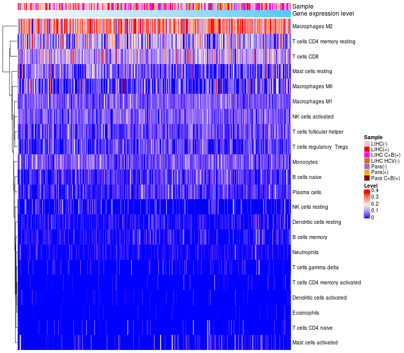 Relationship between gene expression and immune infiltrating cell level