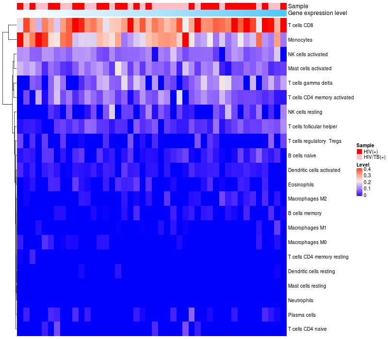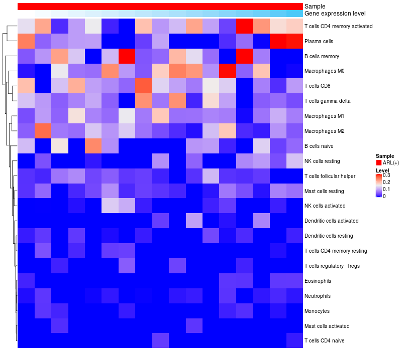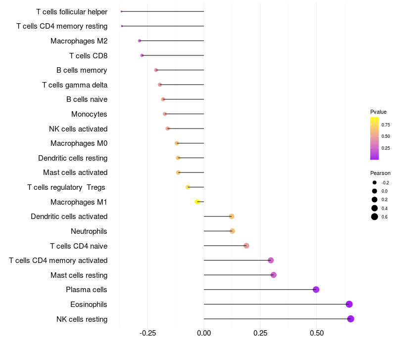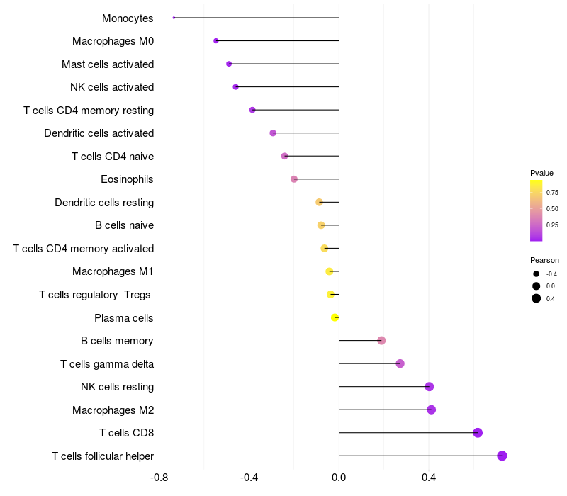 Relationship between gene expression and immune infiltrating cell level