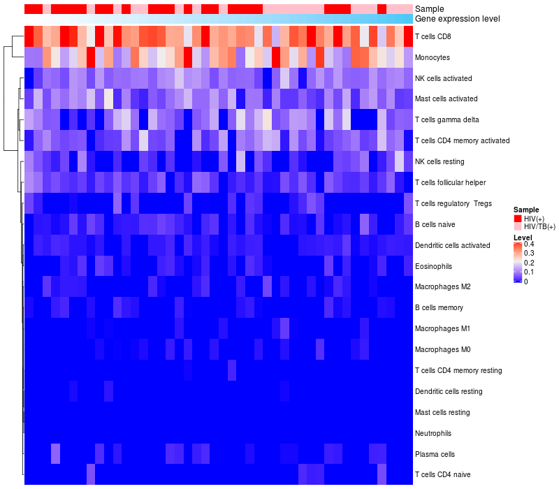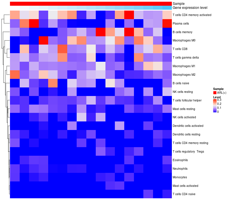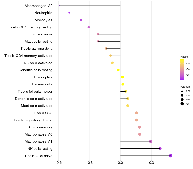 Relationship between gene expression and immune infiltrating cell level