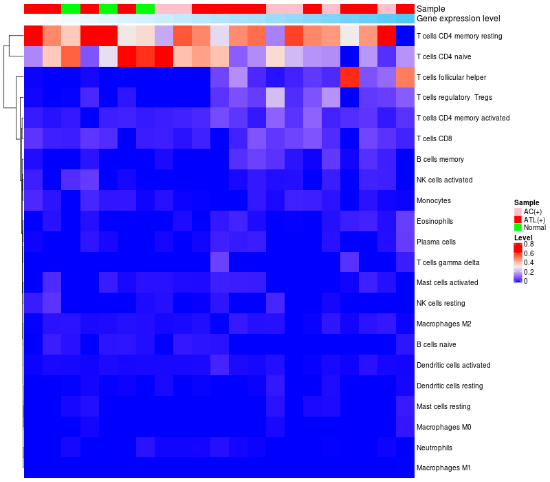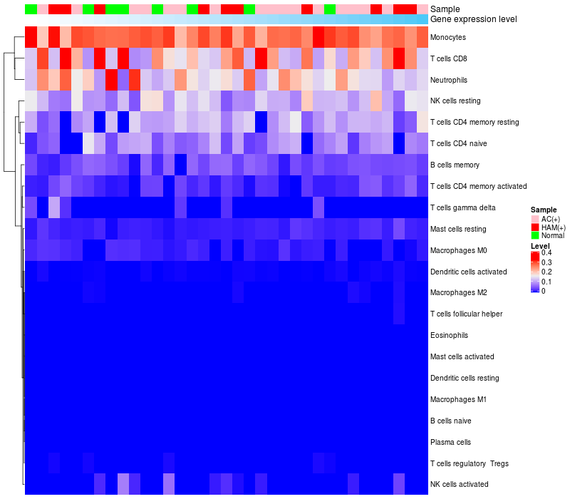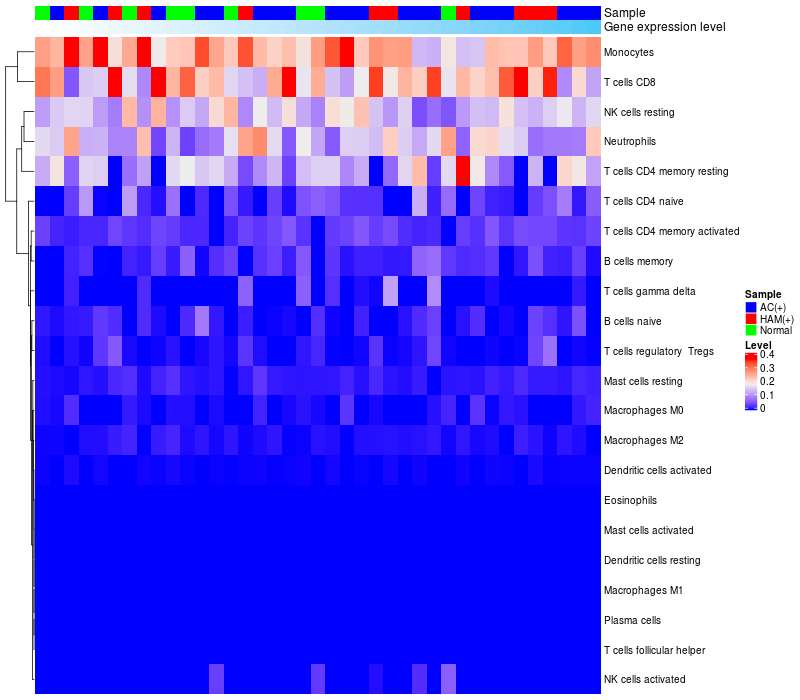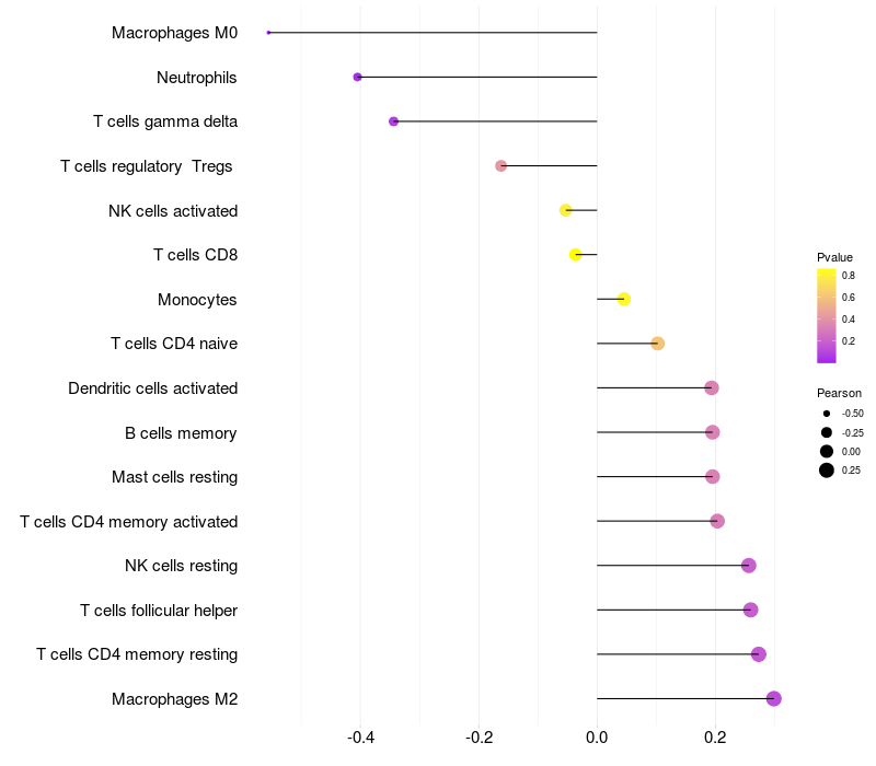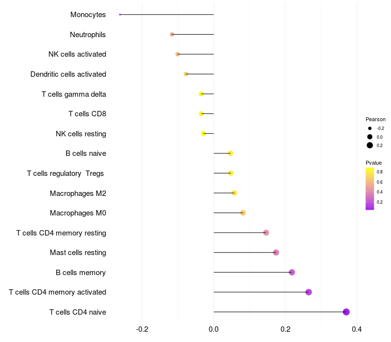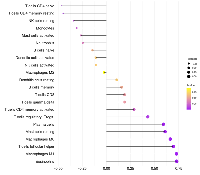 Relationship between gene expression and immune infiltrating cell level