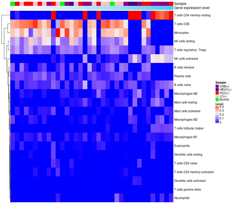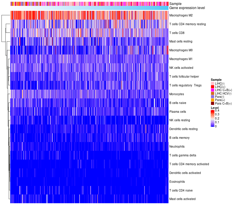Liver hepatocellular carcinoma HCV (HBV+)(86), Liver hepatocellular carcinoma HCV (HBV-)(19), Liver hepatocellular carcinoma (HBV+)(209), Liver hepatocellular carcinoma (HBV+)(60), Paracancerous HCV (HBV+)(4), Paracancerous (HBV-)(28), Paracancerous (HBV+)(18) |