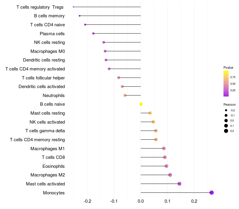 Lollipop of SUCLA2 expression and immune infiltrating cell level correlation result in HBV+ samples