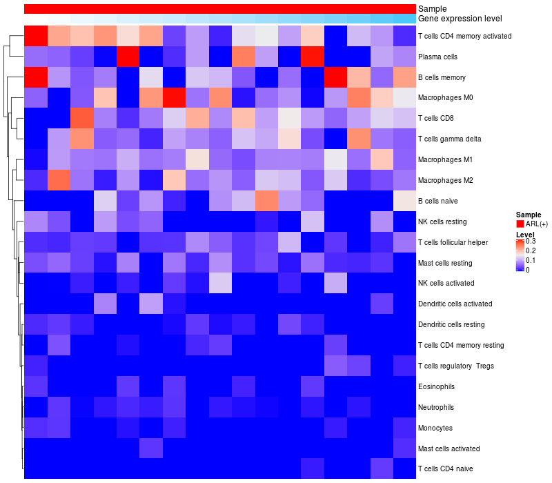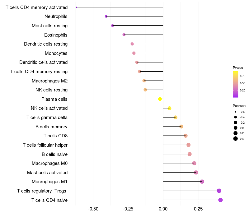 Relationship between gene expression and immune infiltrating cell level