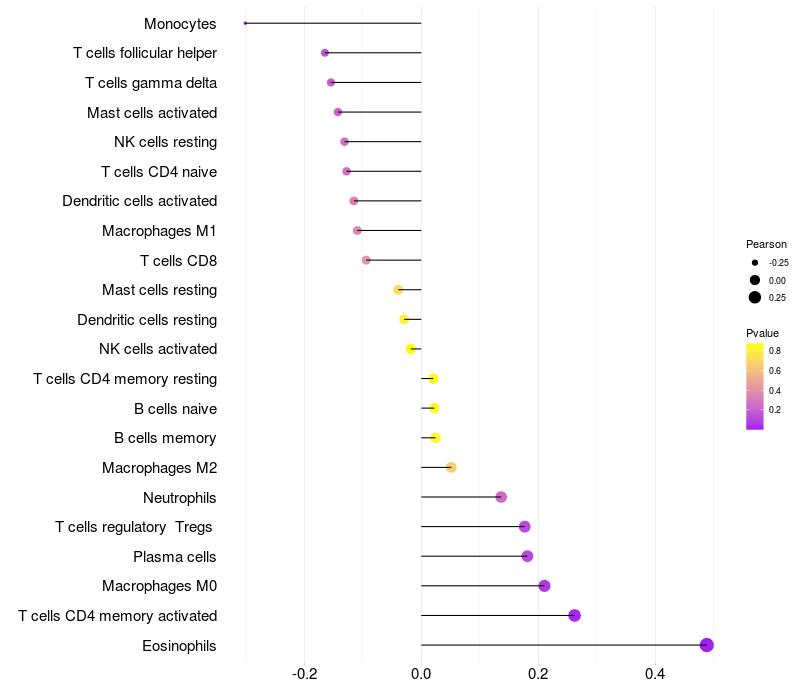 Lollipop of SULF1 expression and immune infiltrating cell level correlation result in HBV+ Hepatocellular carcinoma samples