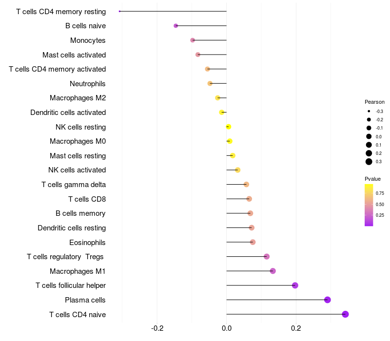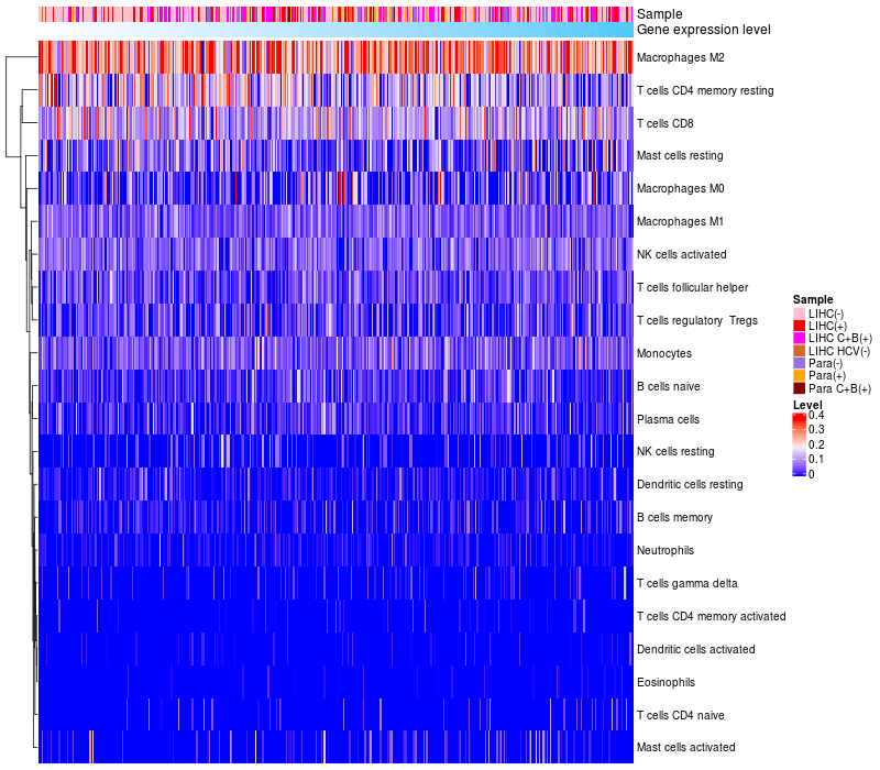 Relationship between gene expression and immune infiltrating cell level