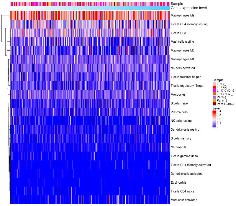 Liver hepatocellular carcinoma HCV (HBV+)(86), Liver hepatocellular carcinoma HCV (HBV-)(19), Liver hepatocellular carcinoma (HBV+)(209), Liver hepatocellular carcinoma (HBV+)(60), Paracancerous HCV (HBV+)(4), Paracancerous (HBV-)(28), Paracancerous (HBV+)(18) |