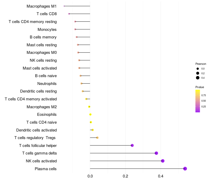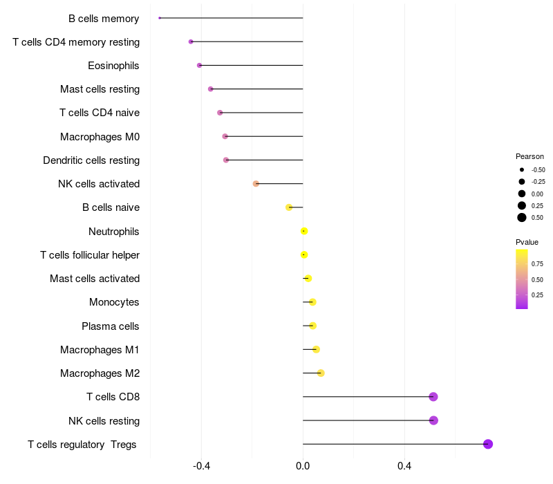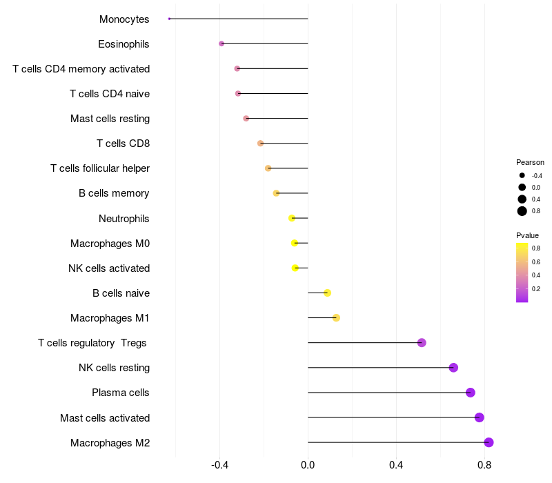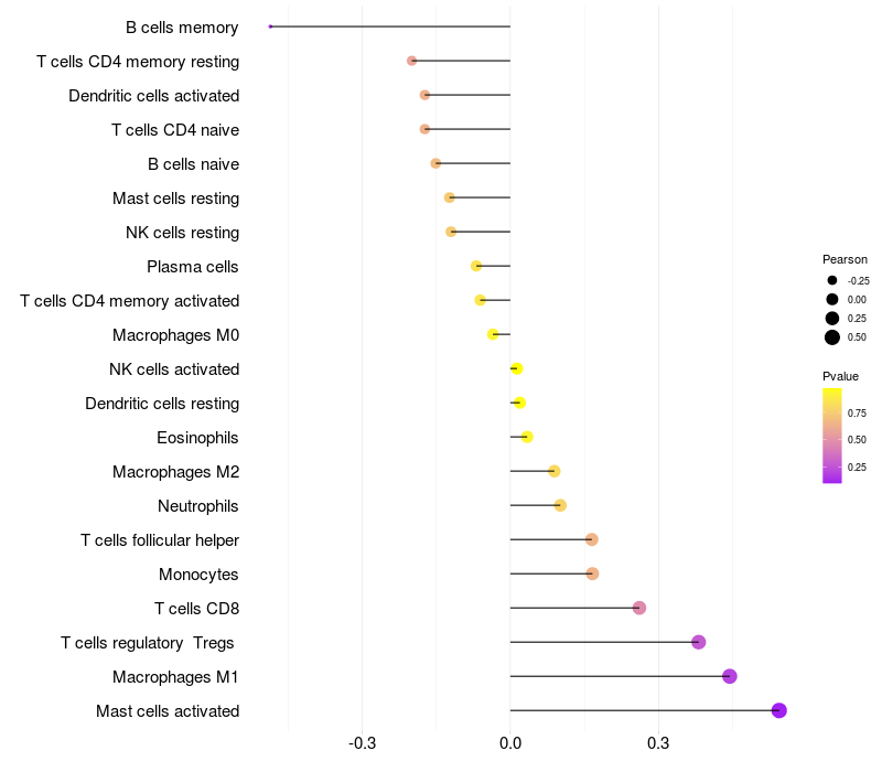 Lollipop of SUSD5 expression and immune infiltrating cell level correlation result in HBV+ Liver cirrhosis samples