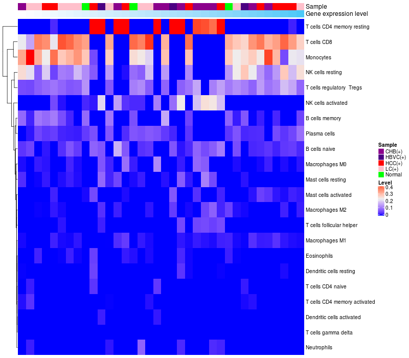Liver hepatocellular carcinoma HCV (HBV+)(86), Liver hepatocellular carcinoma HCV (HBV-)(19), Liver hepatocellular carcinoma (HBV+)(209), Liver hepatocellular carcinoma (HBV+)(60), Paracancerous HCV (HBV+)(4), Paracancerous (HBV-)(28), Paracancerous (HBV+)(18) |