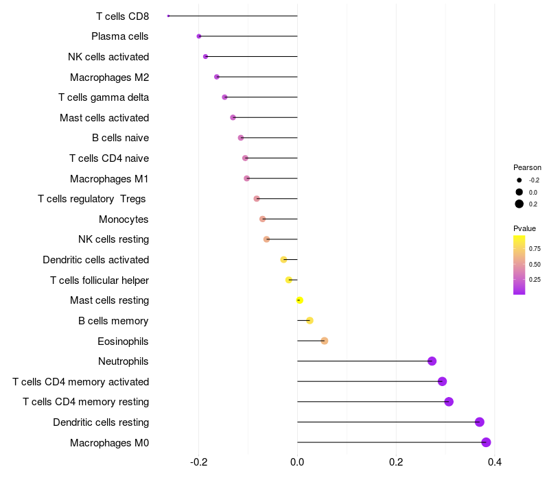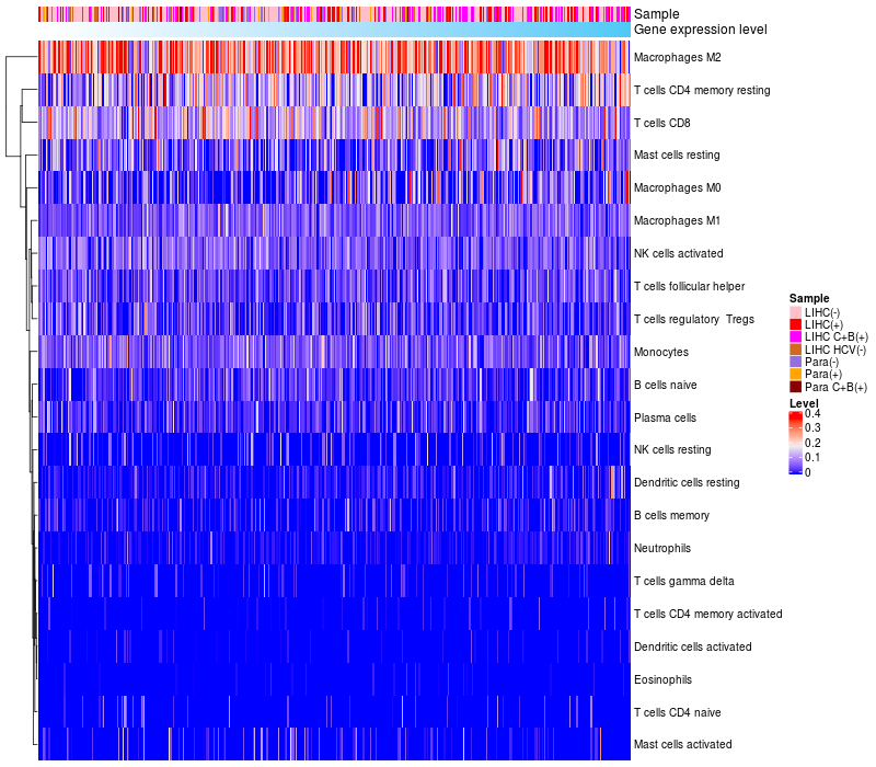 Relationship between gene expression and immune infiltrating cell level