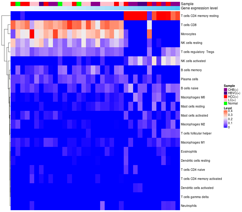 Liver hepatocellular carcinoma HCV (HBV+)(86), Liver hepatocellular carcinoma HCV (HBV-)(19), Liver hepatocellular carcinoma (HBV+)(209), Liver hepatocellular carcinoma (HBV+)(60), Paracancerous HCV (HBV+)(4), Paracancerous (HBV-)(28), Paracancerous (HBV+)(18) |