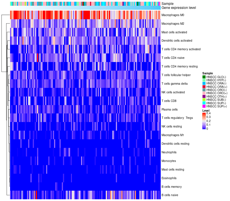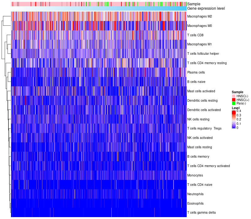 Head and Neck squamous cell carcinoma(HPV-)(483),Head and Neck squamous cell carcinoma(HPV+)(39),Paracancerous(HPV-)(44) |