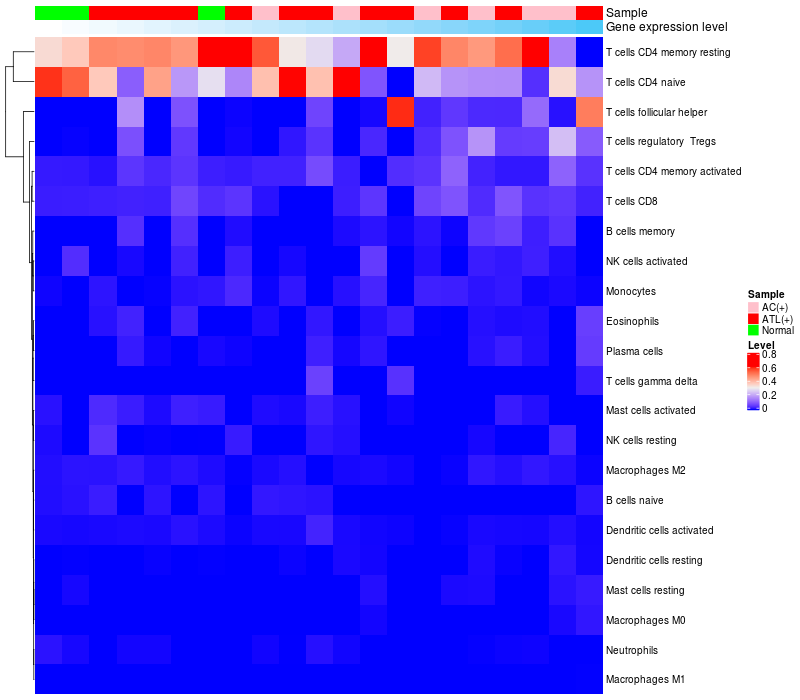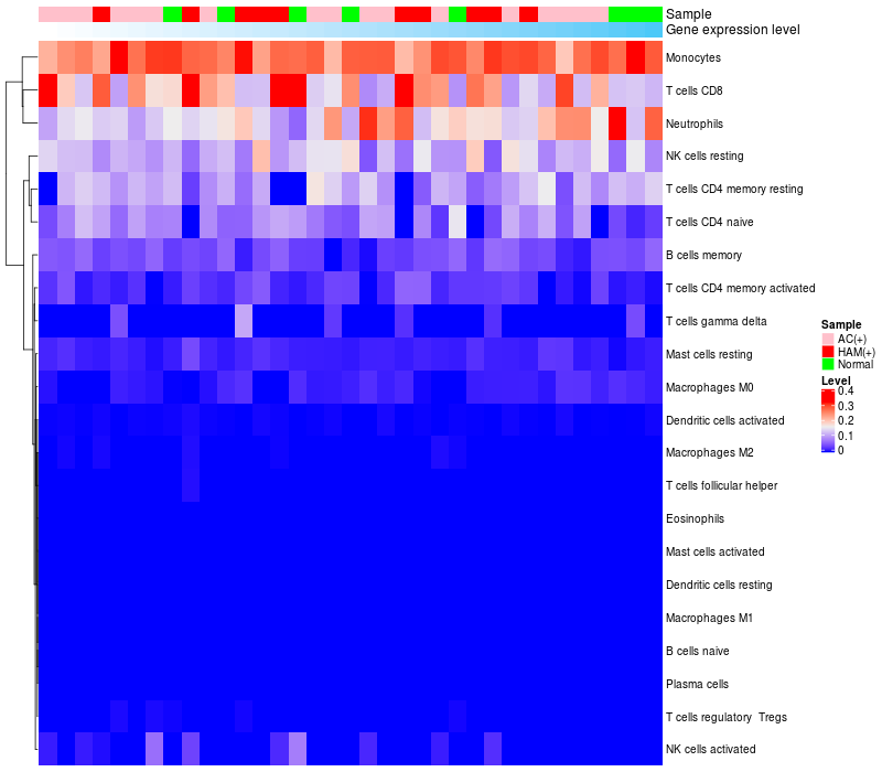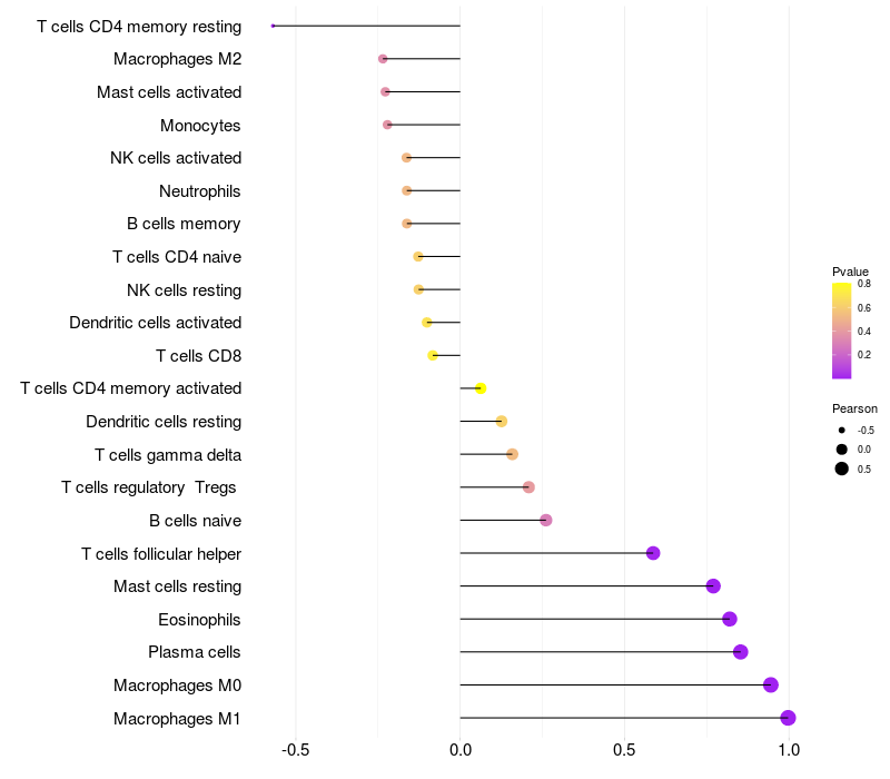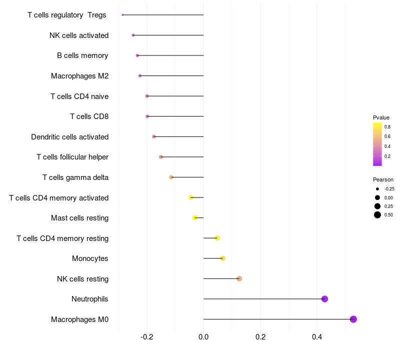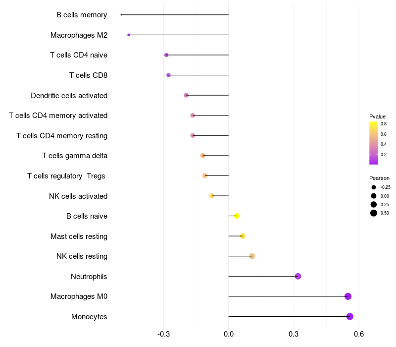 Relationship between gene expression and immune infiltrating cell level