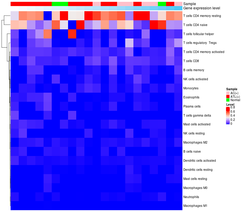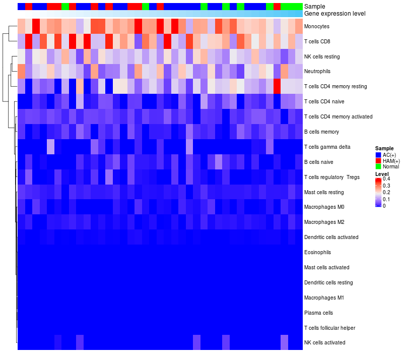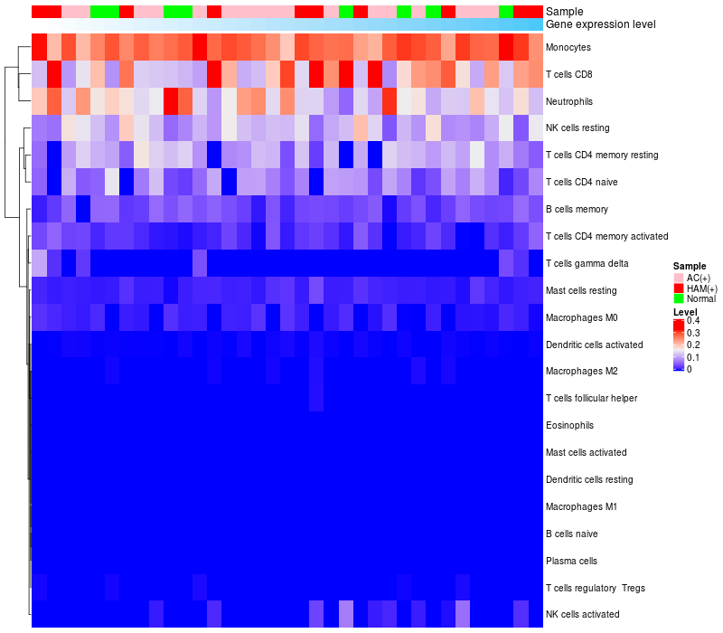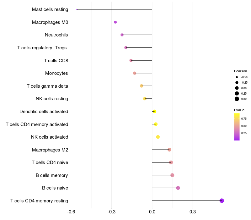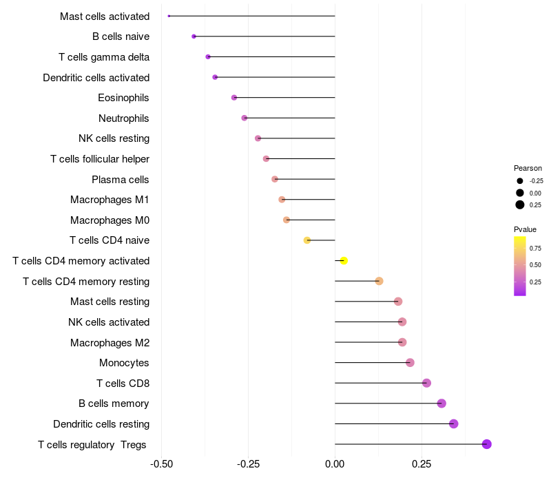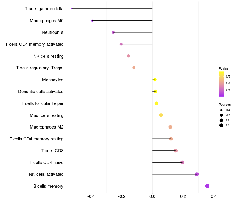 Lollipop of SYNJ2 expression and immune infiltrating cell level correlation result in HTLV1+ samples