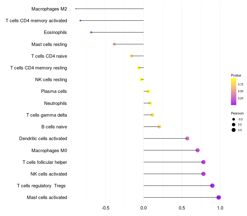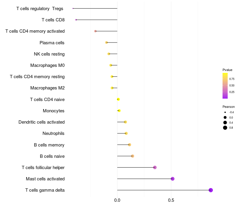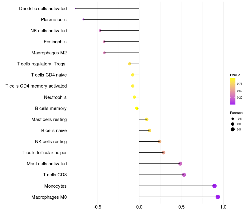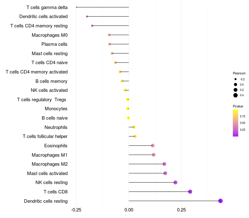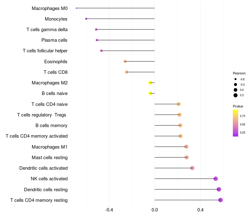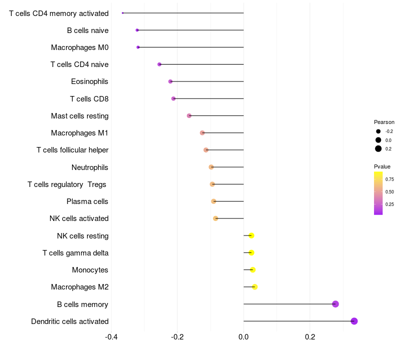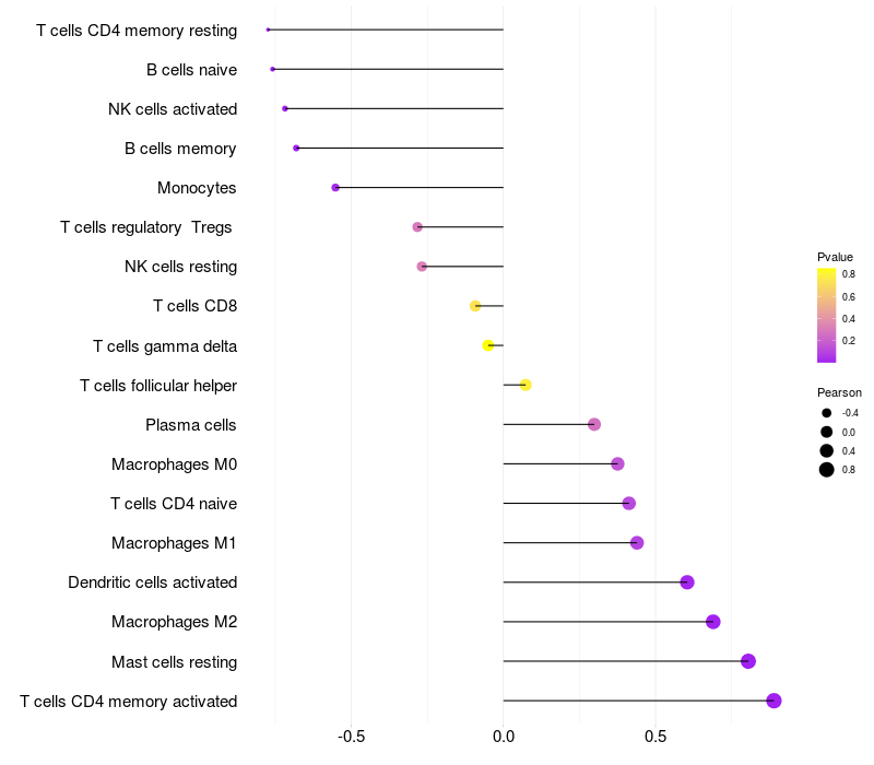 Lollipop of SYNPR expression and immune infiltrating cell level correlation result in EBV+ samples