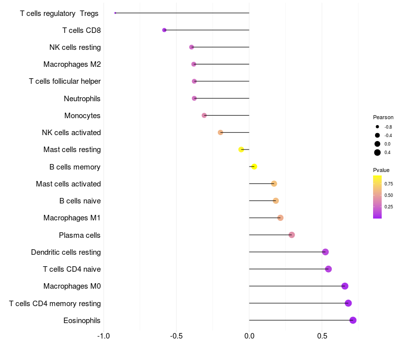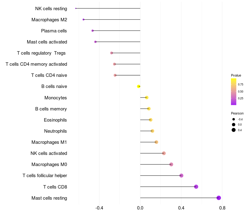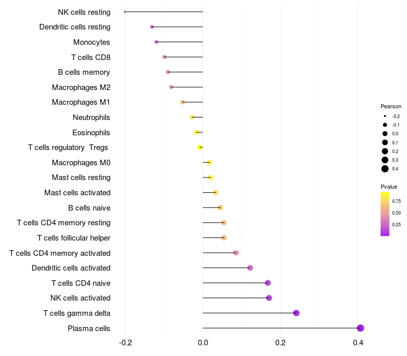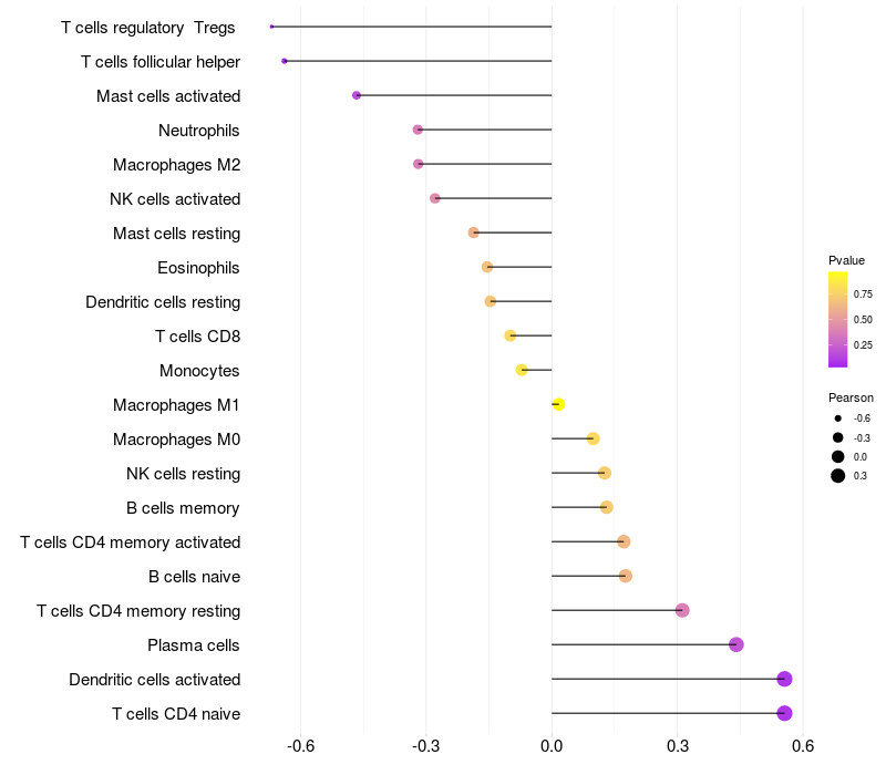 Lollipop of SYTL2 expression and immune infiltrating cell level correlation result in HBV+ Liver cirrhosis samples