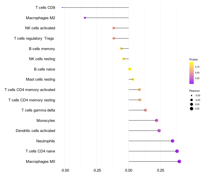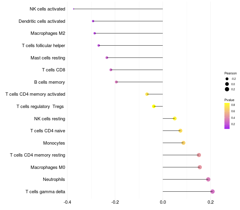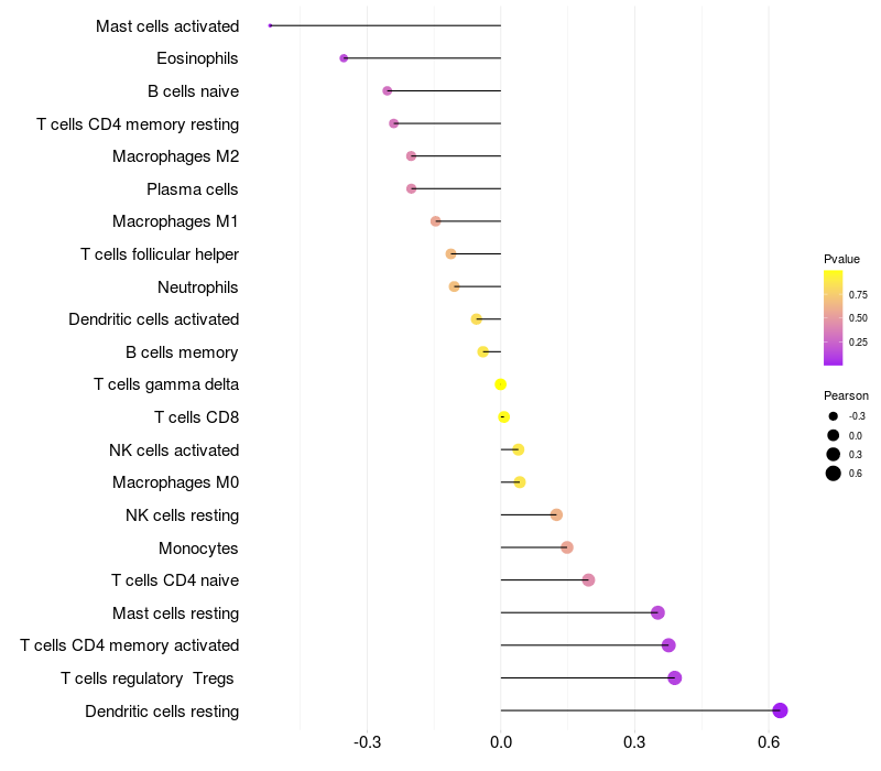 Lollipop of SYTL4 expression and immune infiltrating cell level correlation result in HTLV1+ samples