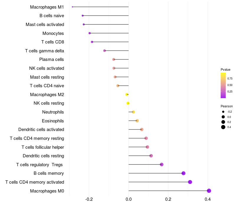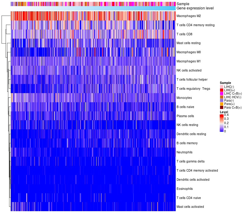 Relationship between gene expression and immune infiltrating cell level
