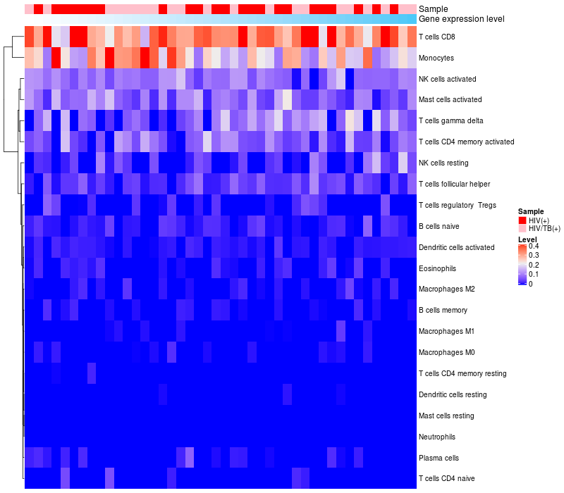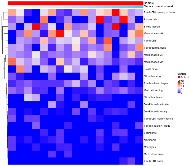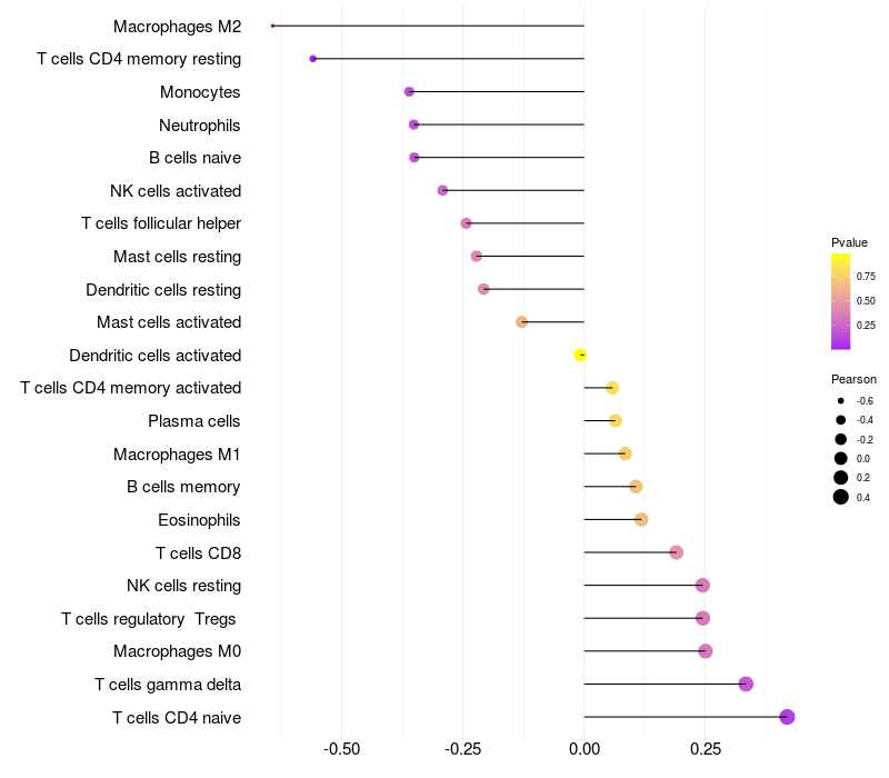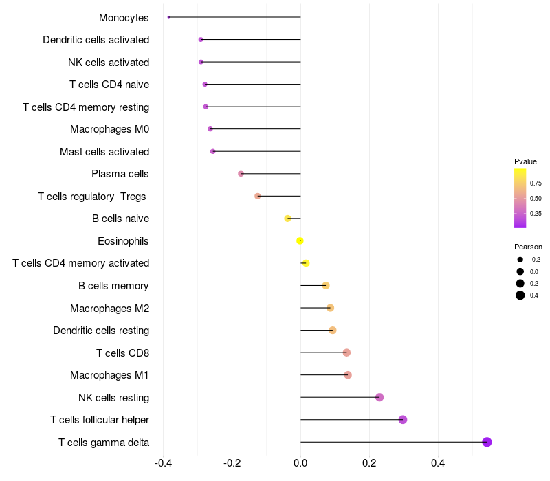Relationship between gene expression and immune infiltrating cell level