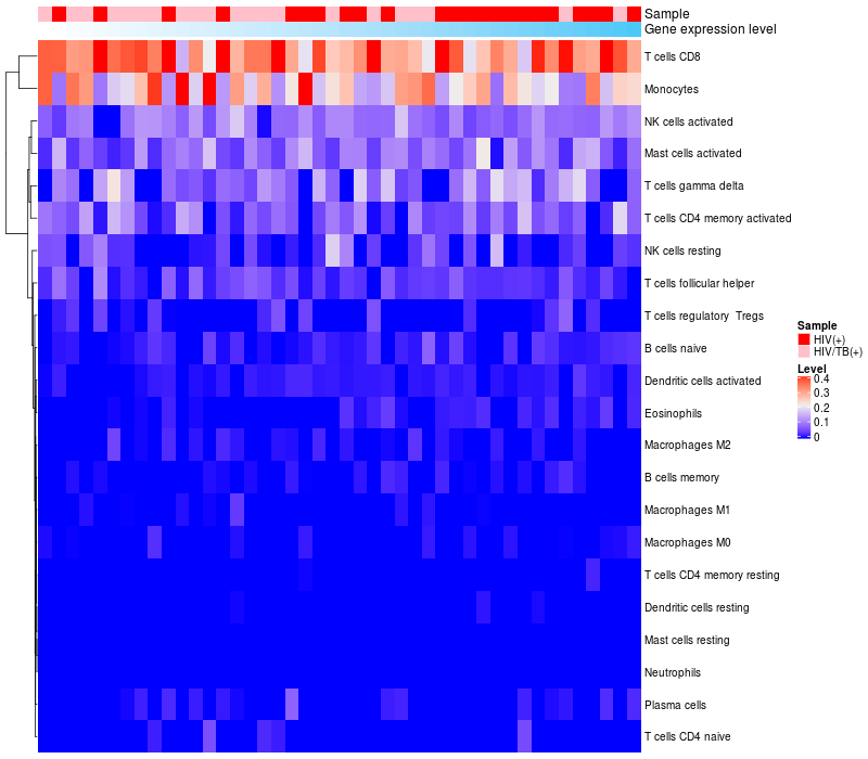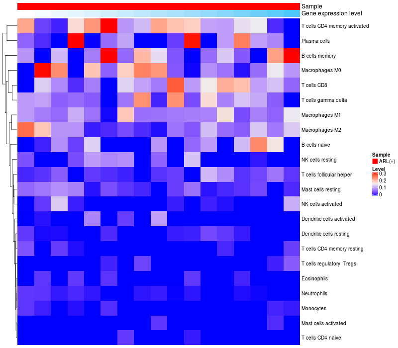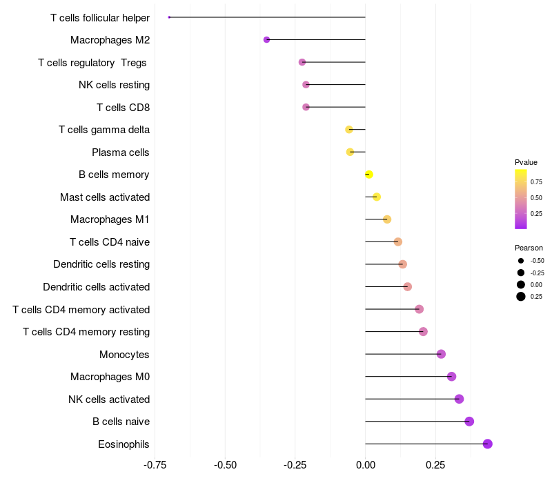 Relationship between gene expression and immune infiltrating cell level