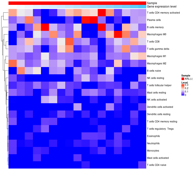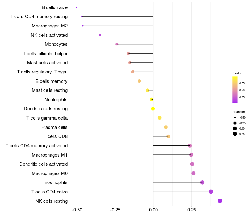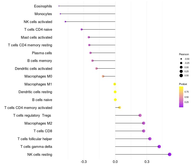 Relationship between gene expression and immune infiltrating cell level