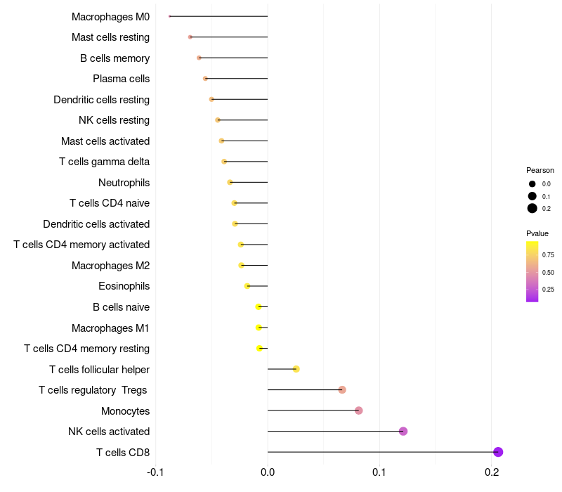 Relationship between gene expression and immune infiltrating cell level