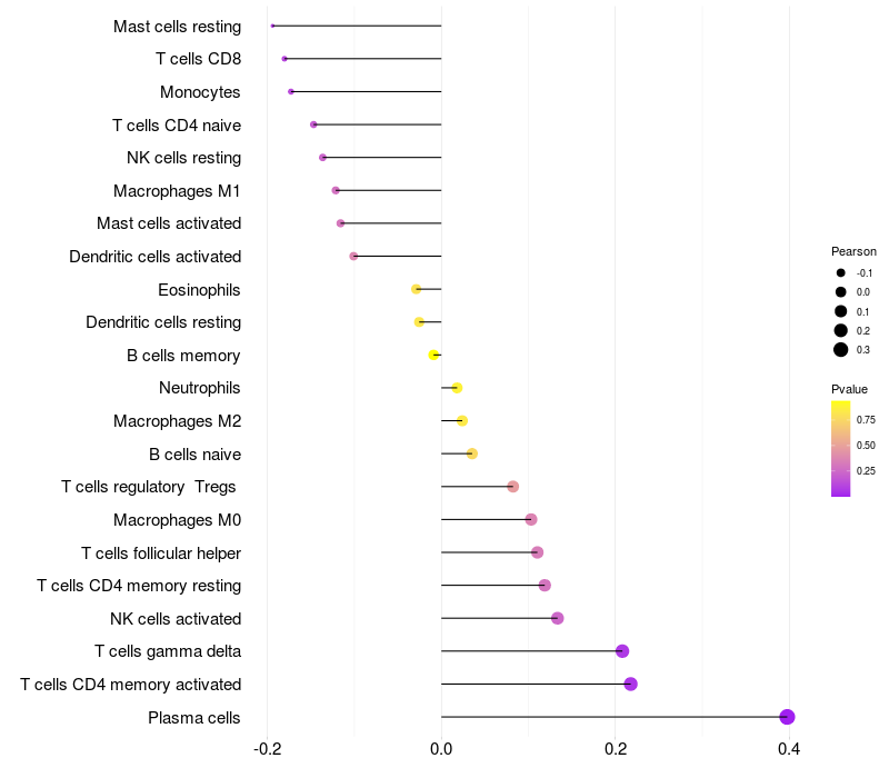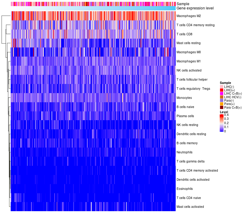 Relationship between gene expression and immune infiltrating cell level