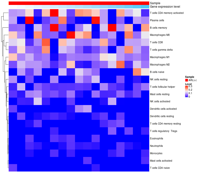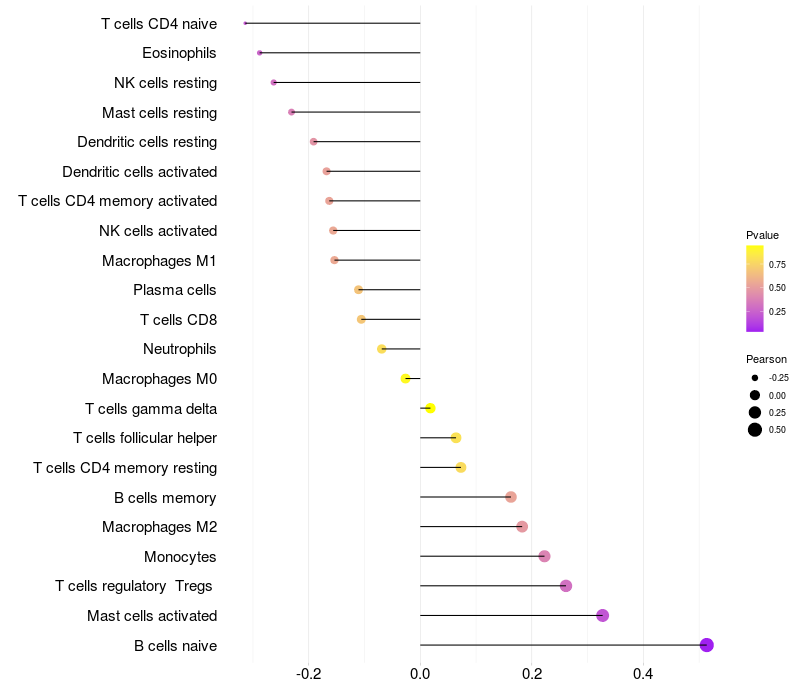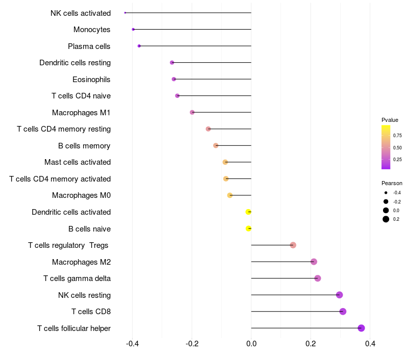 Relationship between gene expression and immune infiltrating cell level