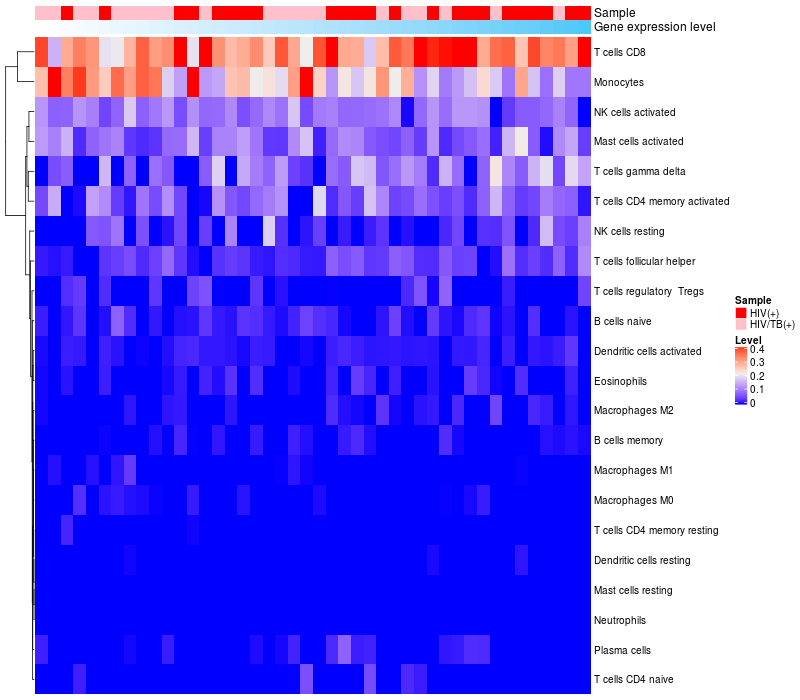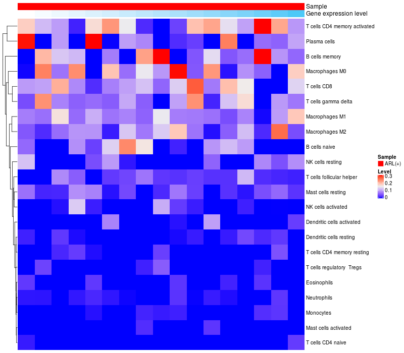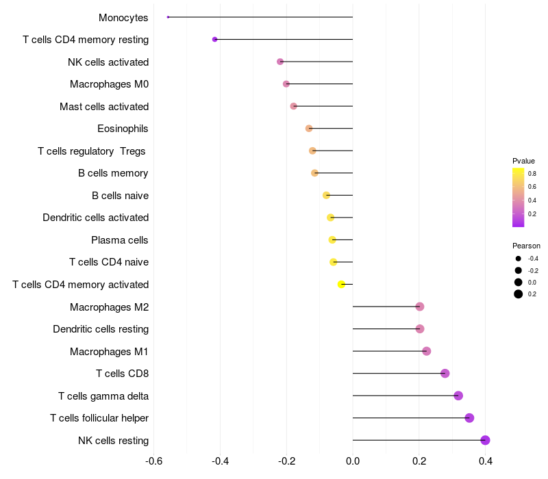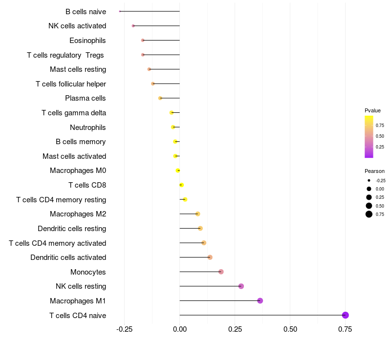 Relationship between gene expression and immune infiltrating cell level