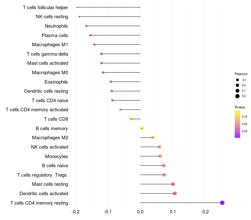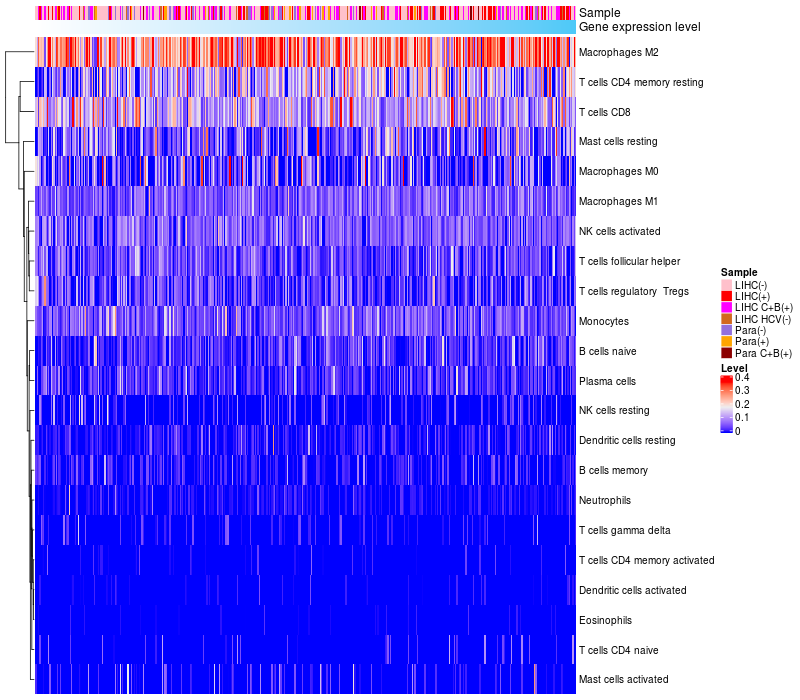 Relationship between gene expression and immune infiltrating cell level