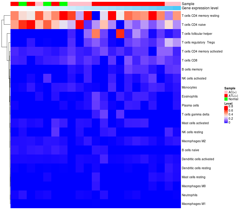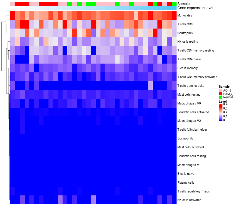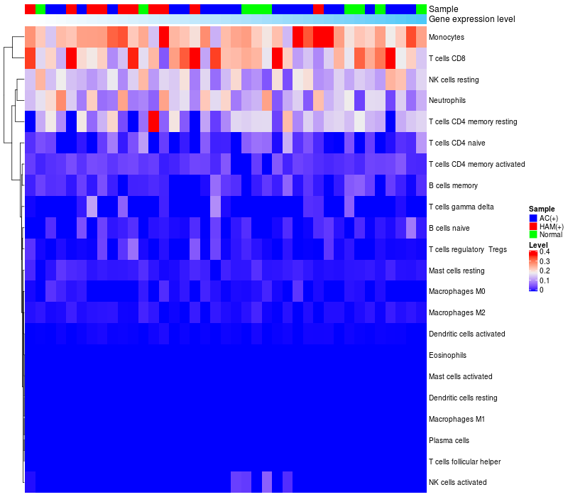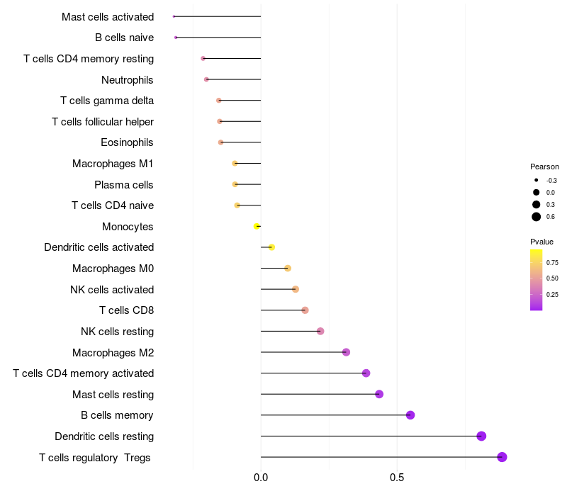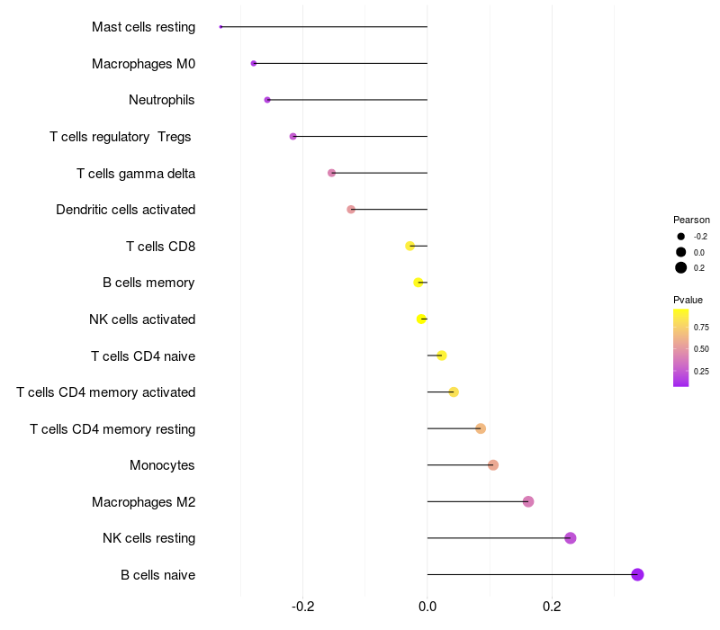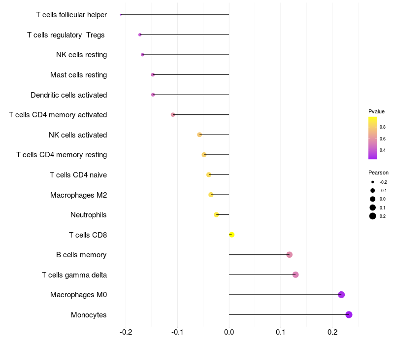 Lollipop of TBC1D9 expression and immune infiltrating cell level correlation result in HTLV1+ samples