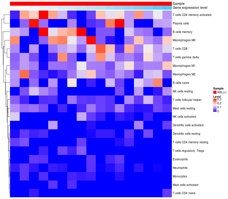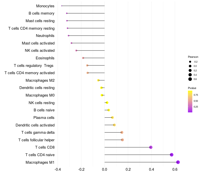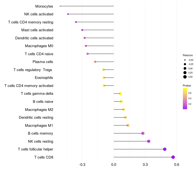 Relationship between gene expression and immune infiltrating cell level