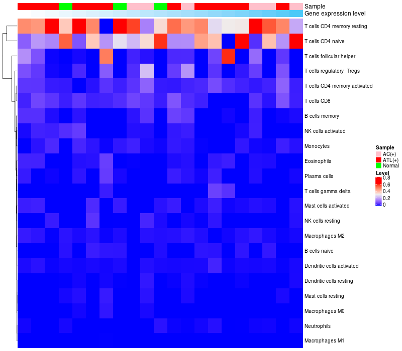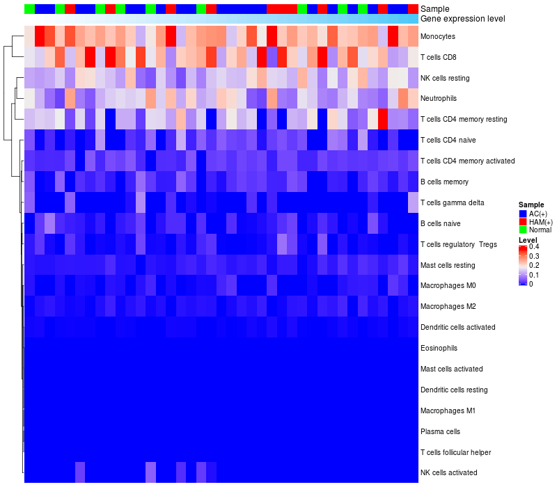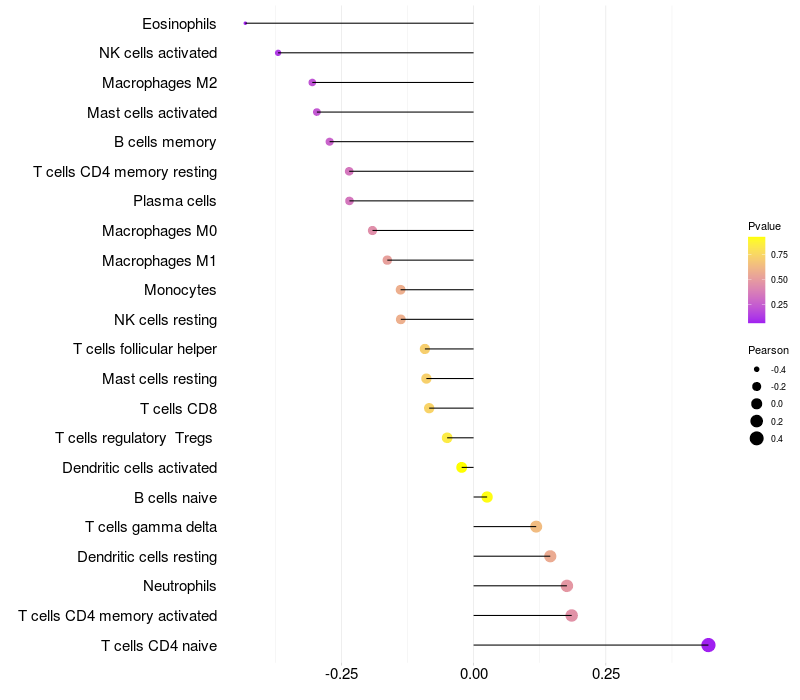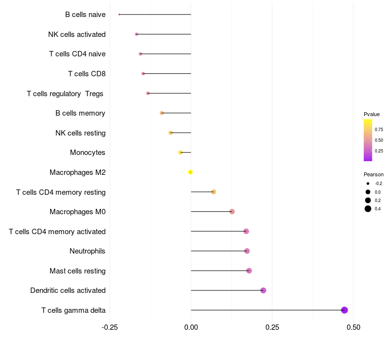 Relationship between gene expression and immune infiltrating cell level