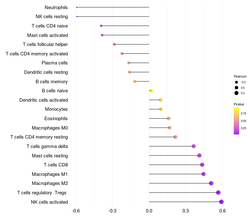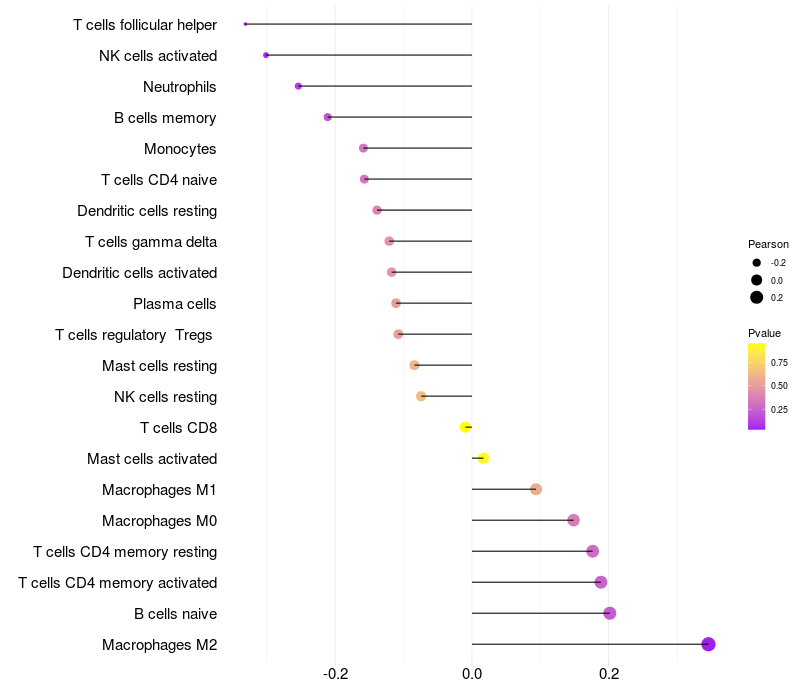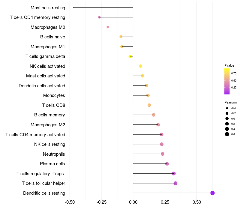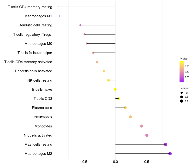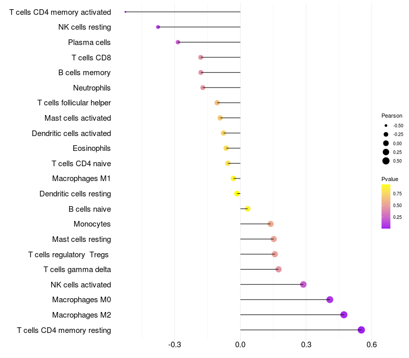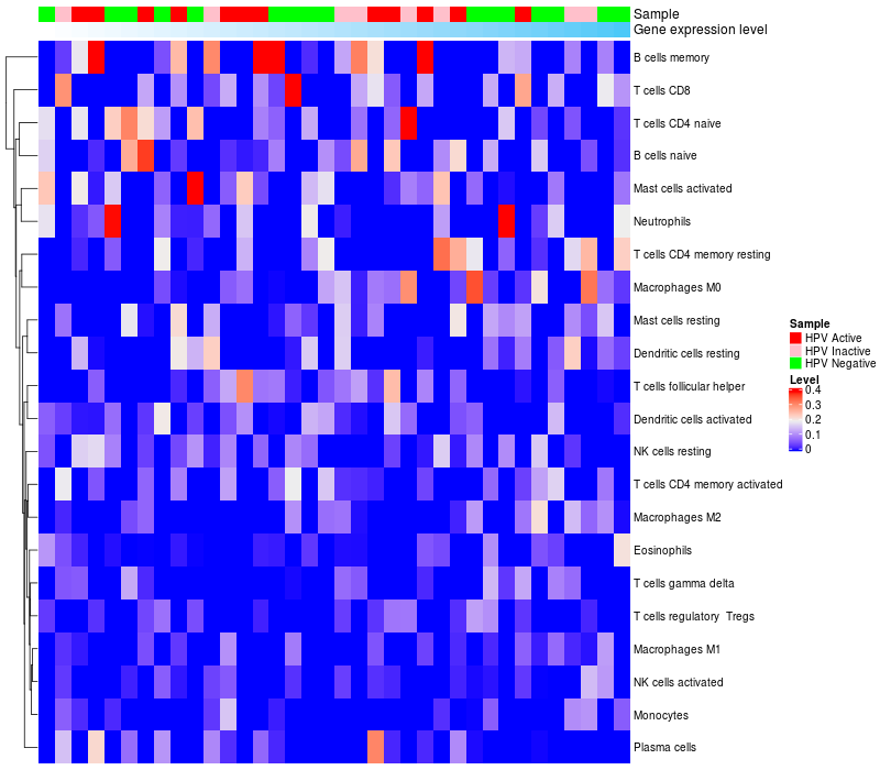 HeatMap of cell type fractions in all samples Lollipop of TBX15 expression and immune infiltrating cell level correlation result in HPV+ samples
