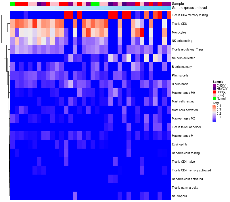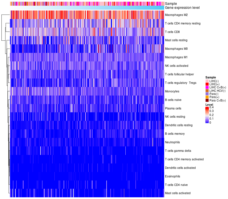 Liver hepatocellular carcinoma HCV (HBV+)(86), Liver hepatocellular carcinoma HCV (HBV-)(19), Liver hepatocellular carcinoma (HBV+)(209), Liver hepatocellular carcinoma (HBV+)(60), Paracancerous HCV (HBV+)(4), Paracancerous (HBV-)(28), Paracancerous (HBV+)(18) |