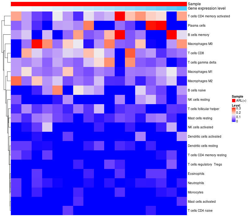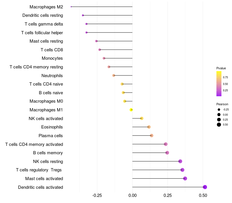 Relationship between gene expression and immune infiltrating cell level