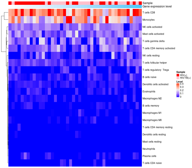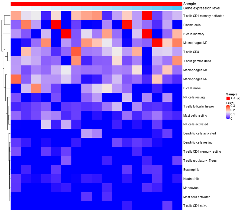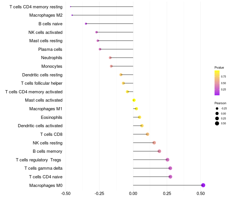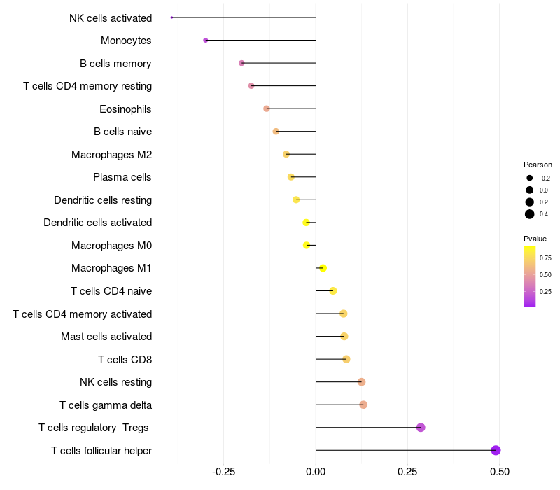 Relationship between gene expression and immune infiltrating cell level