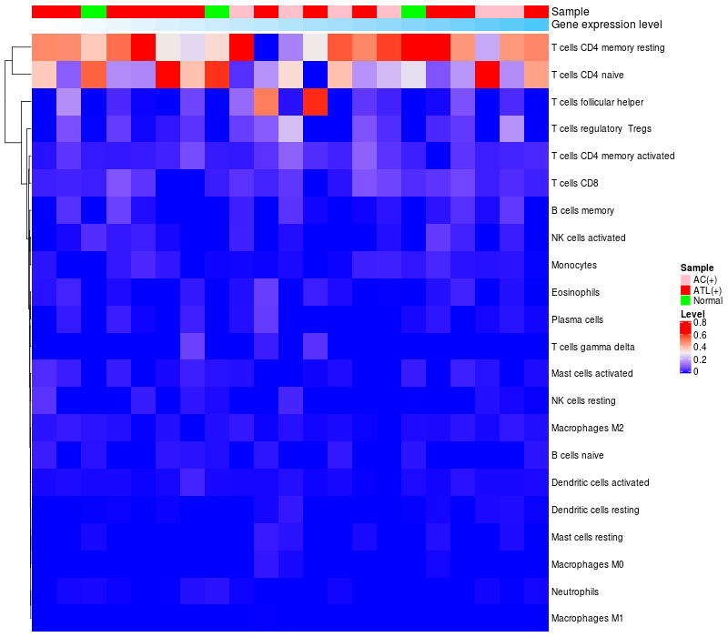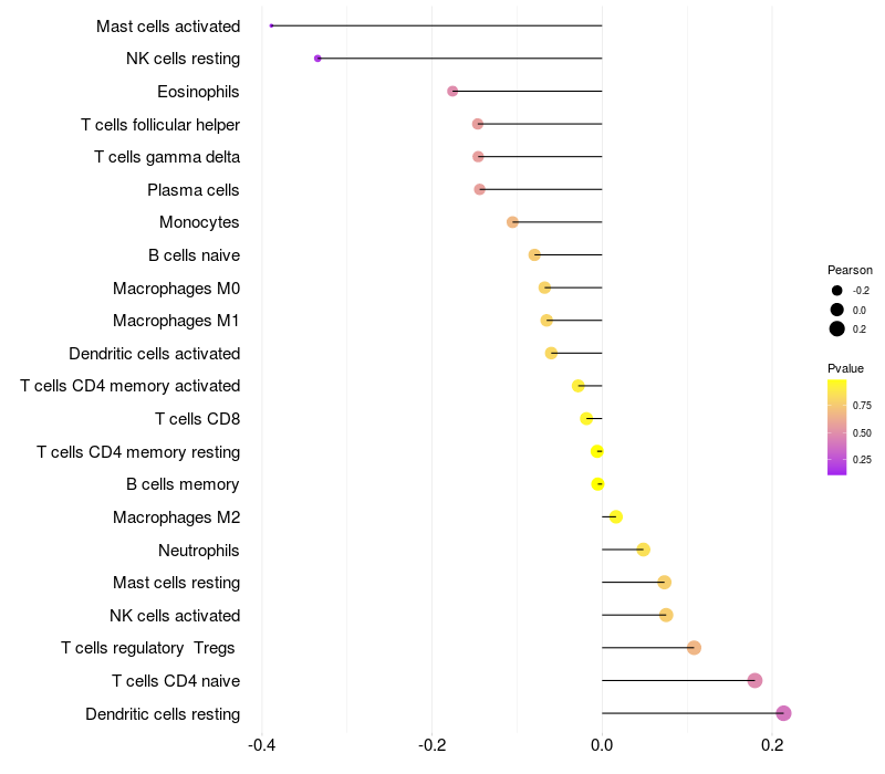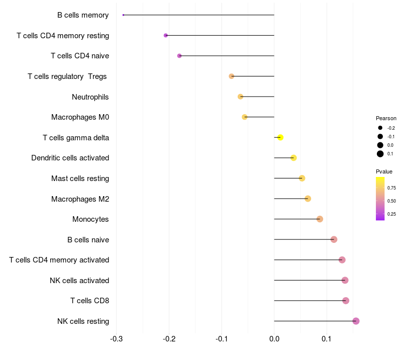 Relationship between gene expression and immune infiltrating cell level