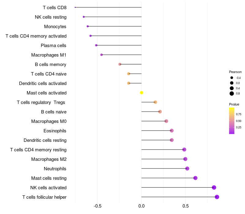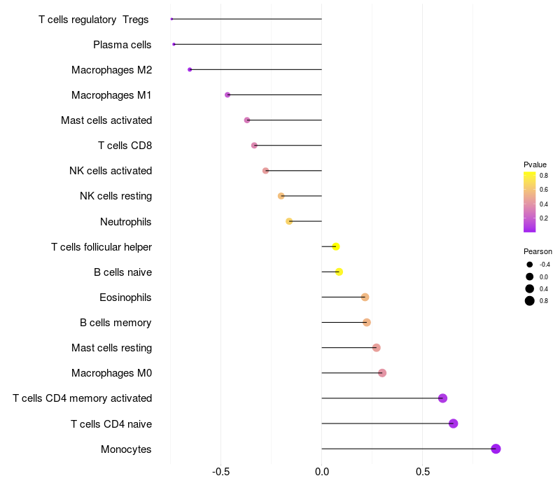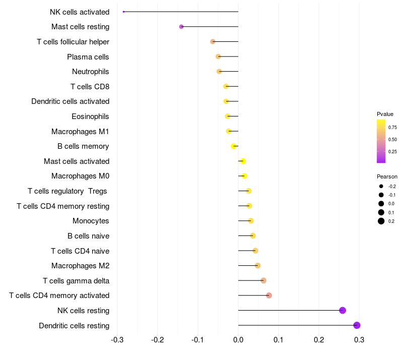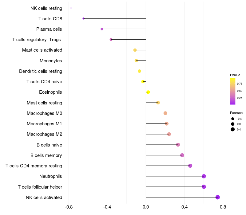 Lollipop of TCN2 expression and immune infiltrating cell level correlation result in HBV+ Liver cirrhosis samples