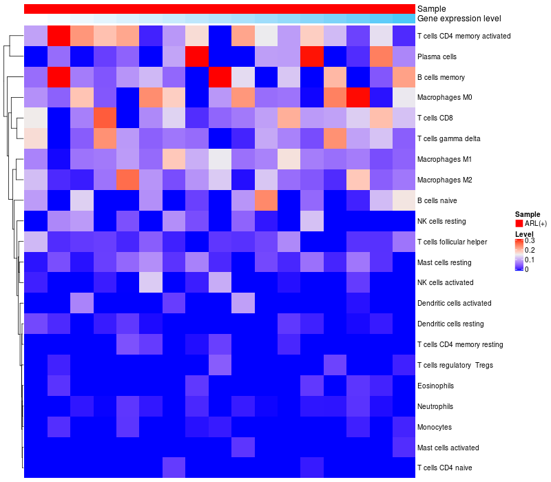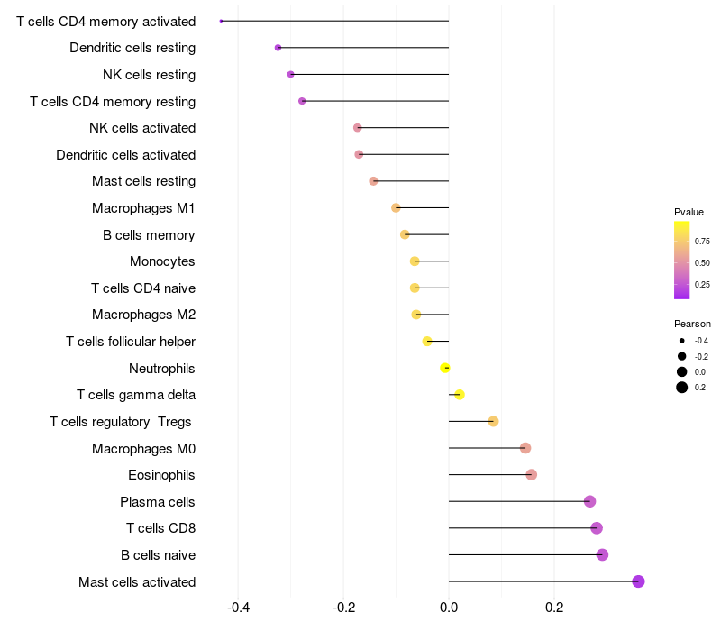 Relationship between gene expression and immune infiltrating cell level