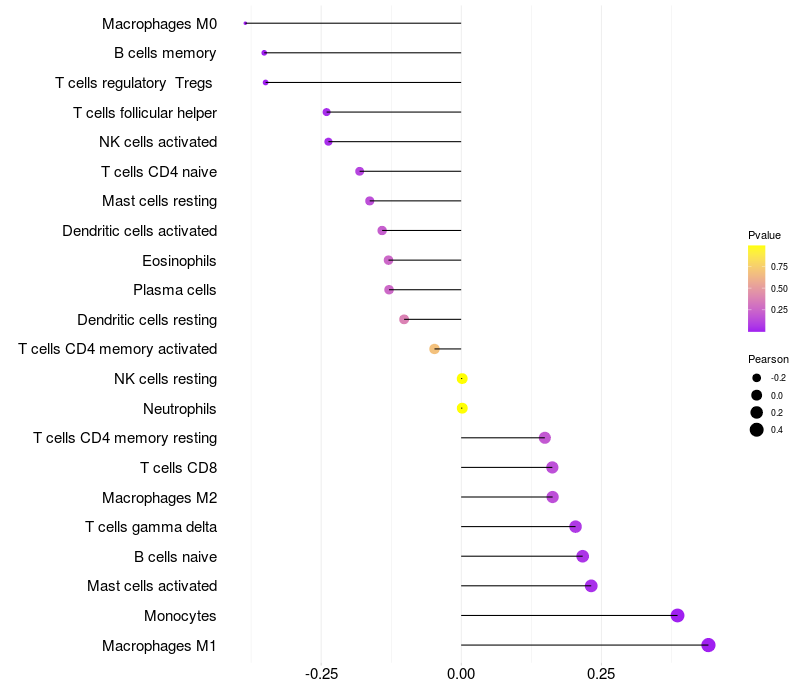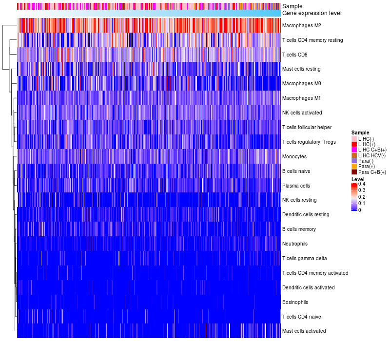 Relationship between gene expression and immune infiltrating cell level