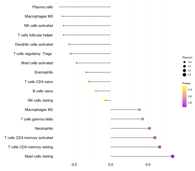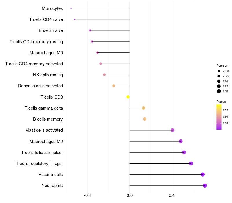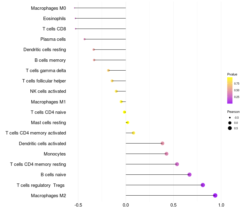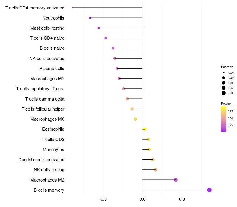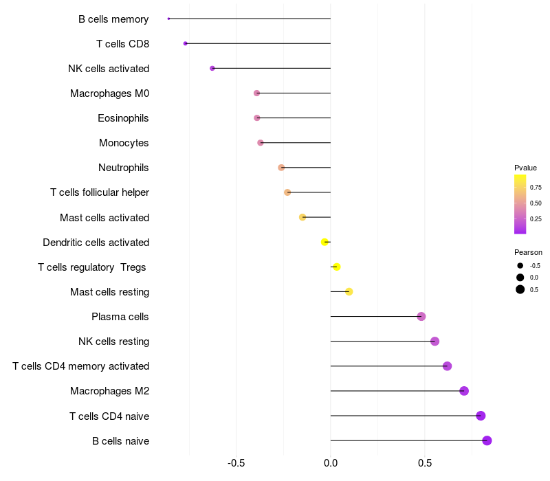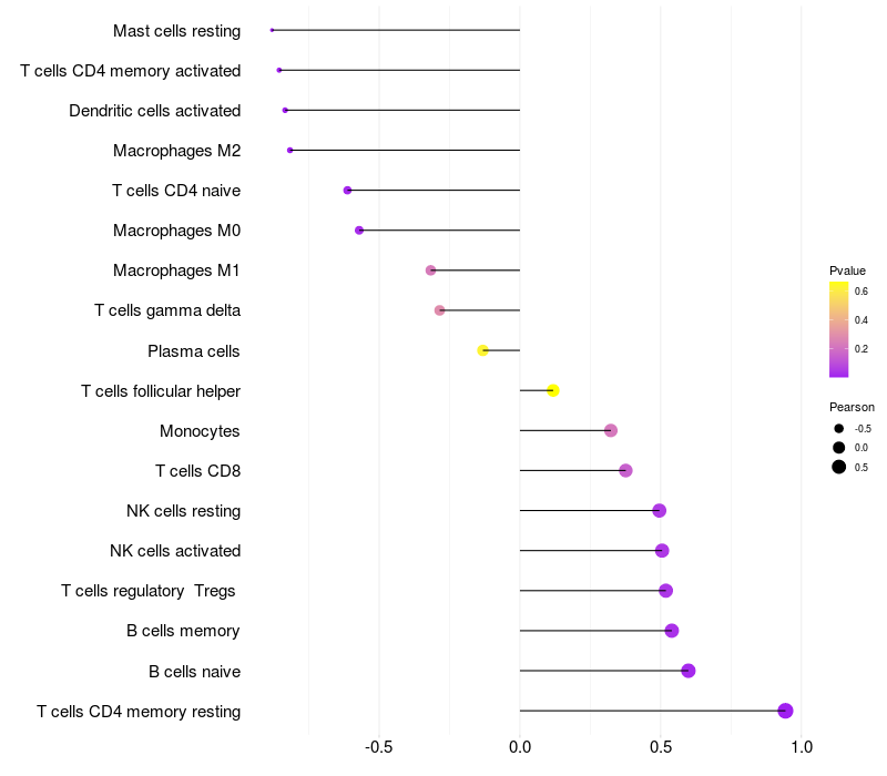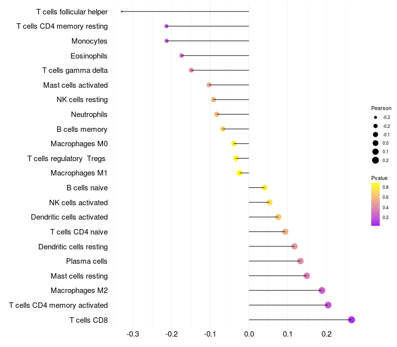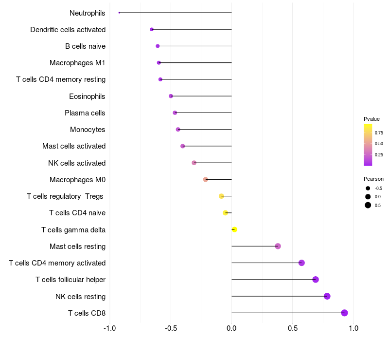 Lollipop of TDP1 expression and immune infiltrating cell level correlation result in EBV+ samples