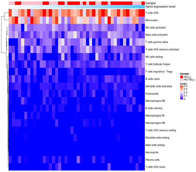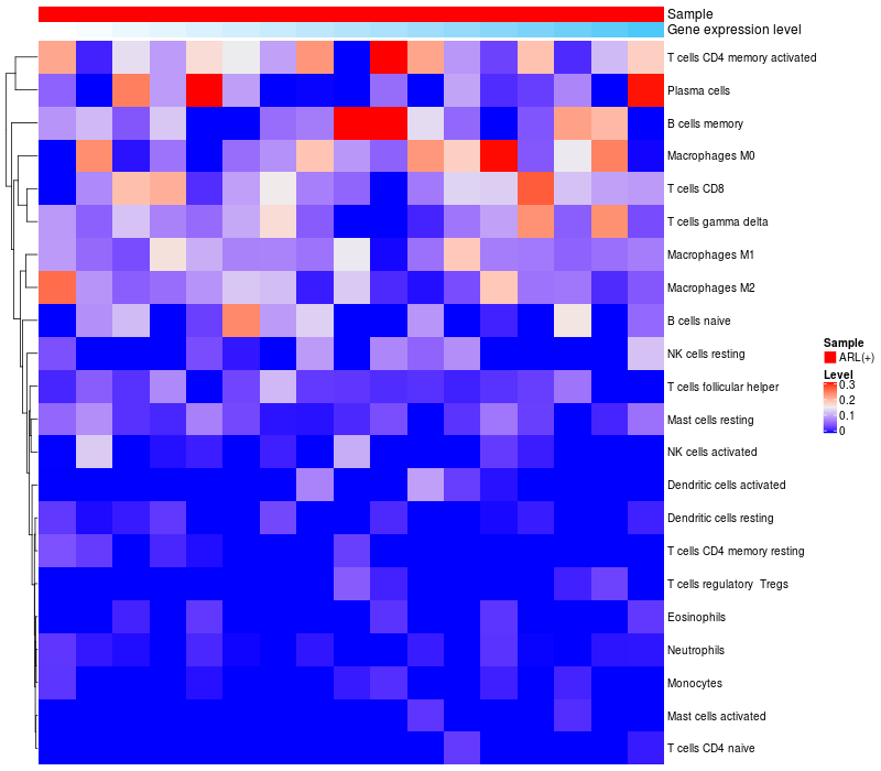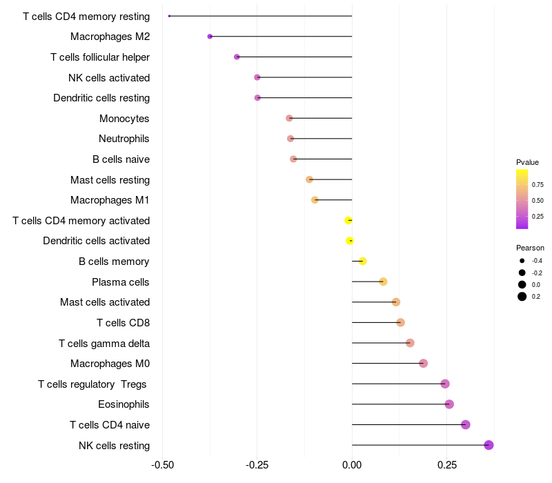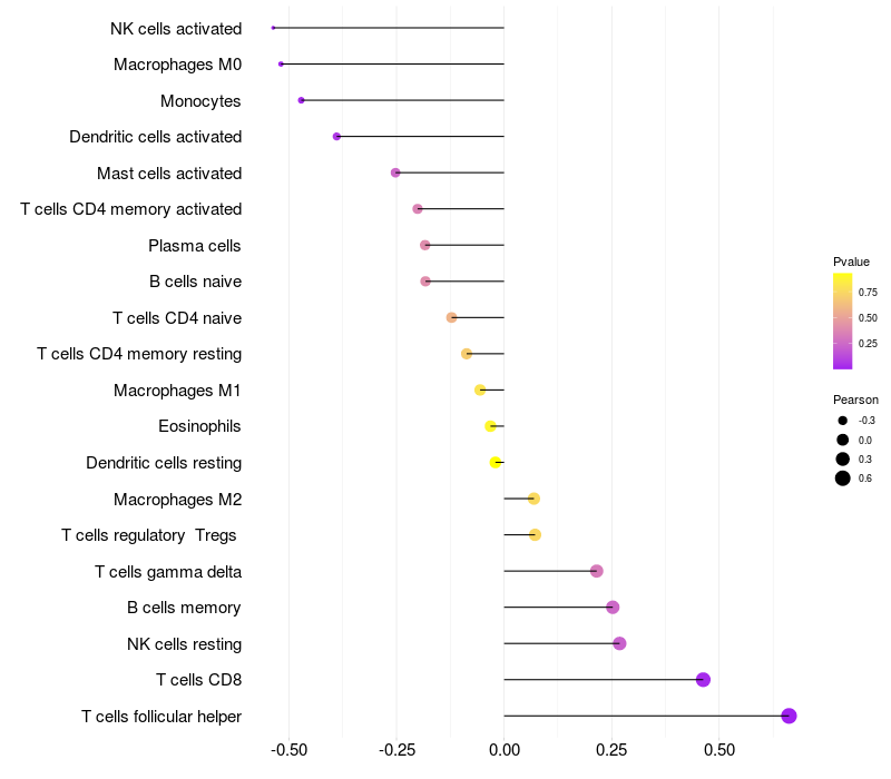 Relationship between gene expression and immune infiltrating cell level
