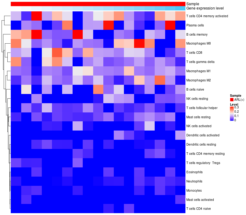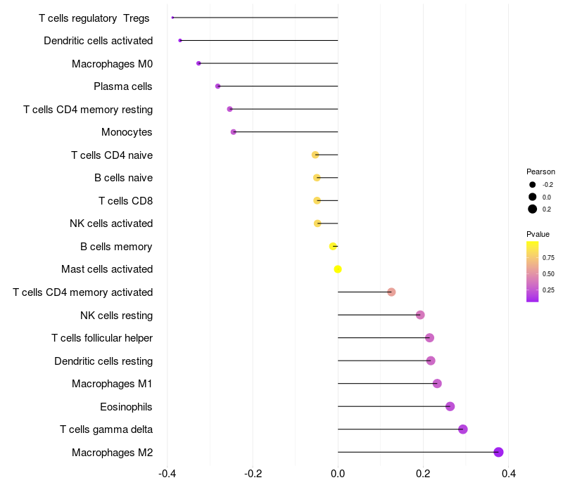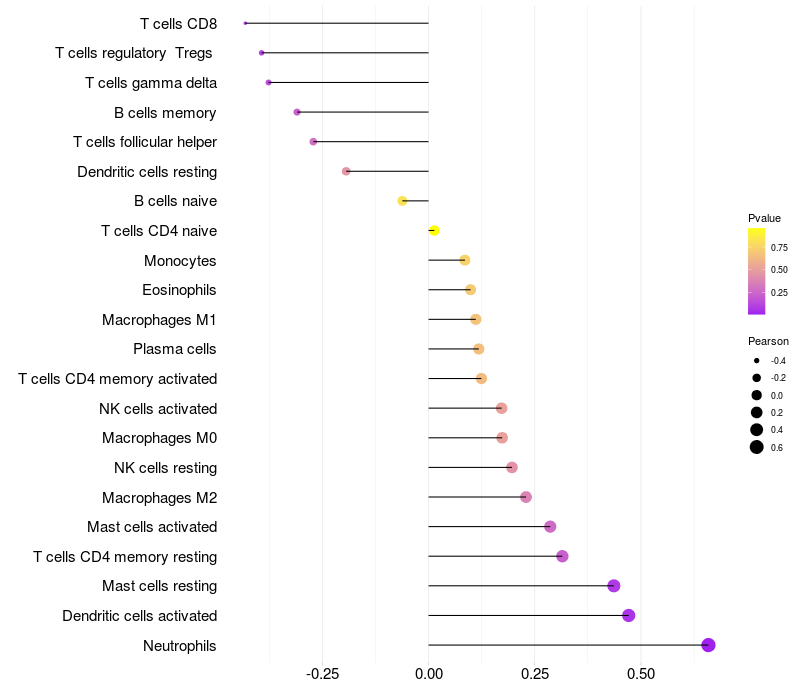 Relationship between gene expression and immune infiltrating cell level