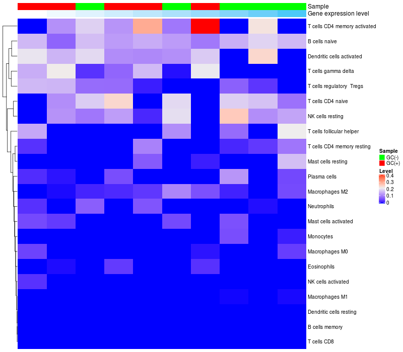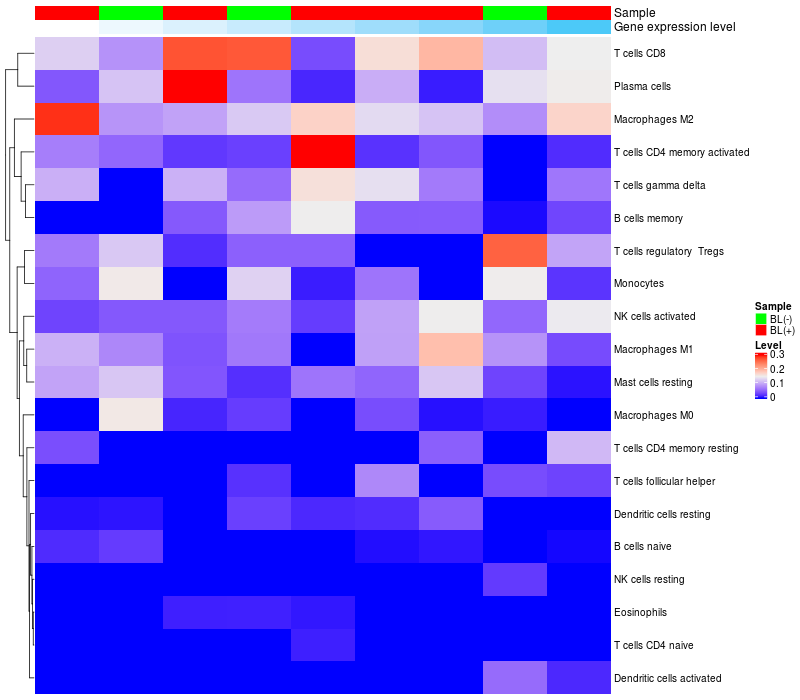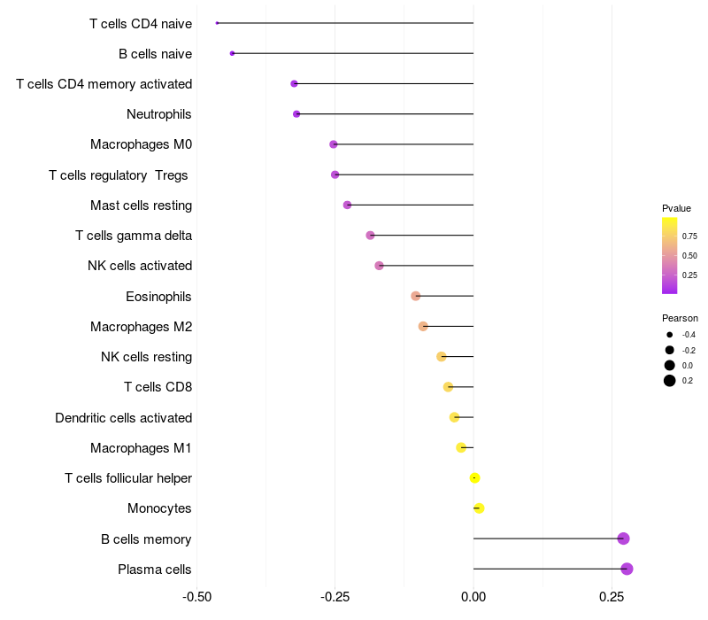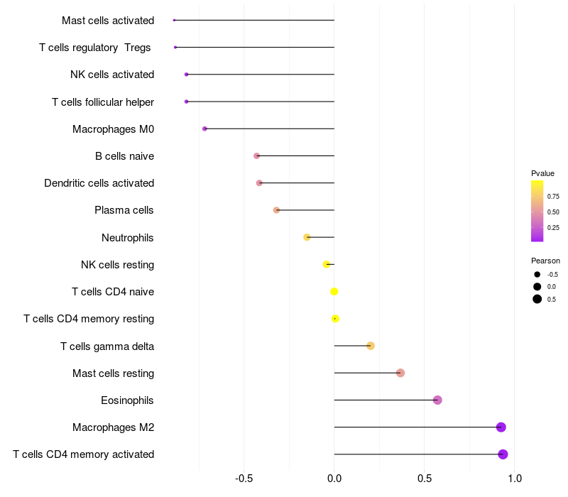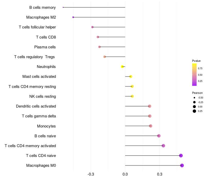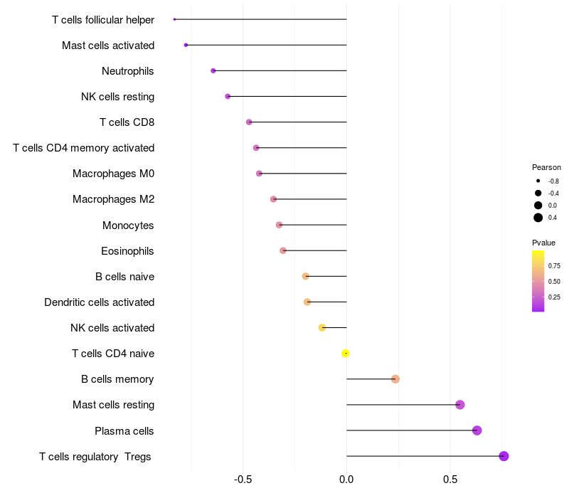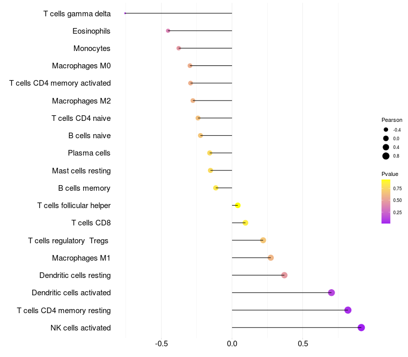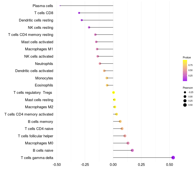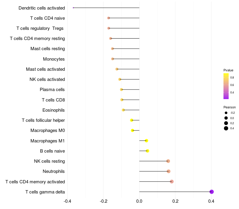 Lollipop of TDRD9 expression and immune infiltrating cell level correlation result in EBV+ samples